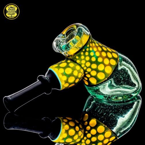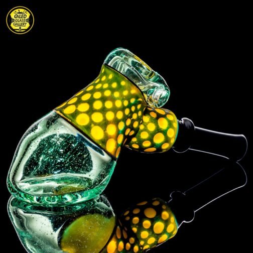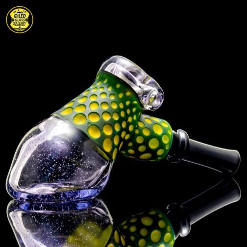 2020 CFL Graal Hammer Pipe made of Northstar Glass CFL Siriusly, sandblasted Northstar Glass Experimental Green #5 frit over Glass Alchemy Yellow Crayon and Glass Alchemy Eclipse Black mouthpiece.