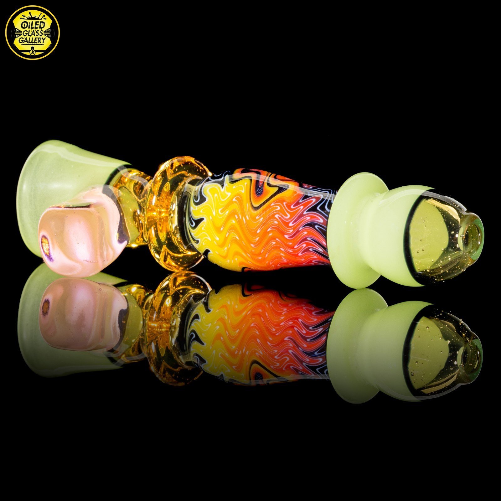 2020 3.25in CFL Onnie/Chillum made with fire themed wig wag linework, Glass Alchemy Antidote, Glass Alchemy CFL Terps mid section featuring a Glass Alchemy CFL Serum mib and Northstar Glass Jet Black lip wraps.