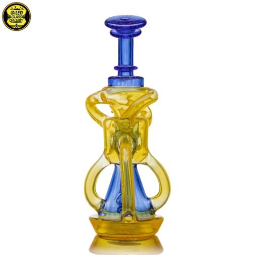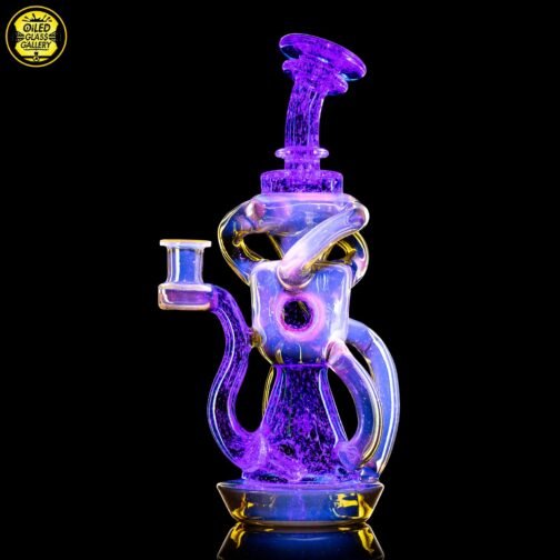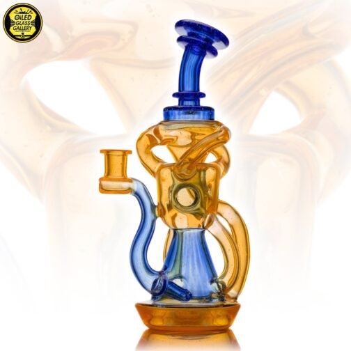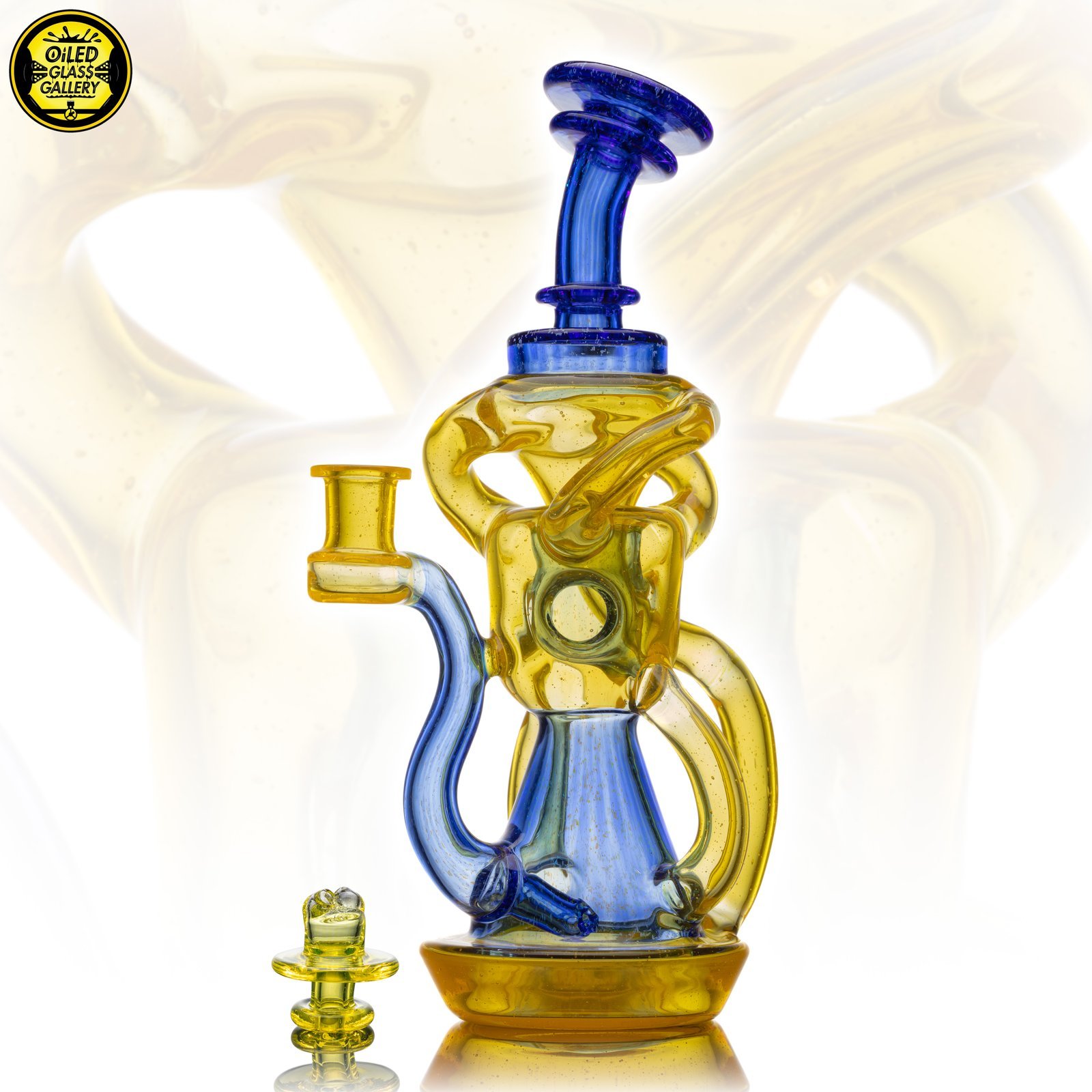2021 10mm 8.5in CFL & UV Trifecta Jesus Seal Tornado Recycler made of CFL & UV Pdx Tubing Company Sunport Heisnenberg and Glass Alchemy Brilliant Blue with Teal Dichro sections. Comes with a matching spinner cap shipped in an Apache 2800 case.