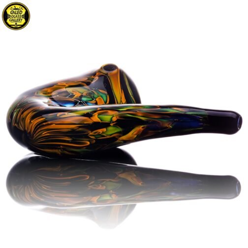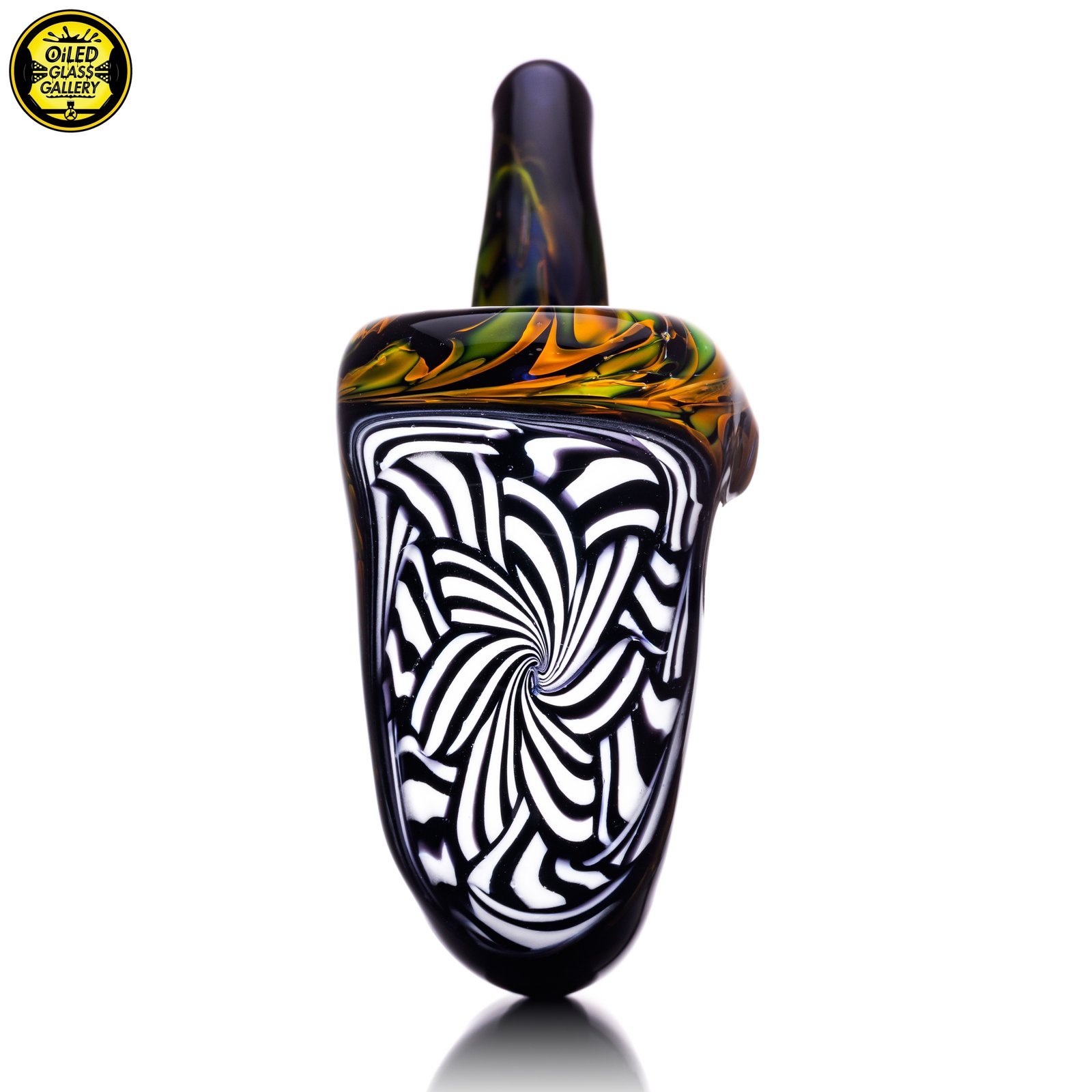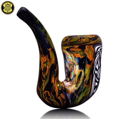 2018 3.5in Chaos Fumed Sherlock pipe featuring a Black & White chipstack swirl.