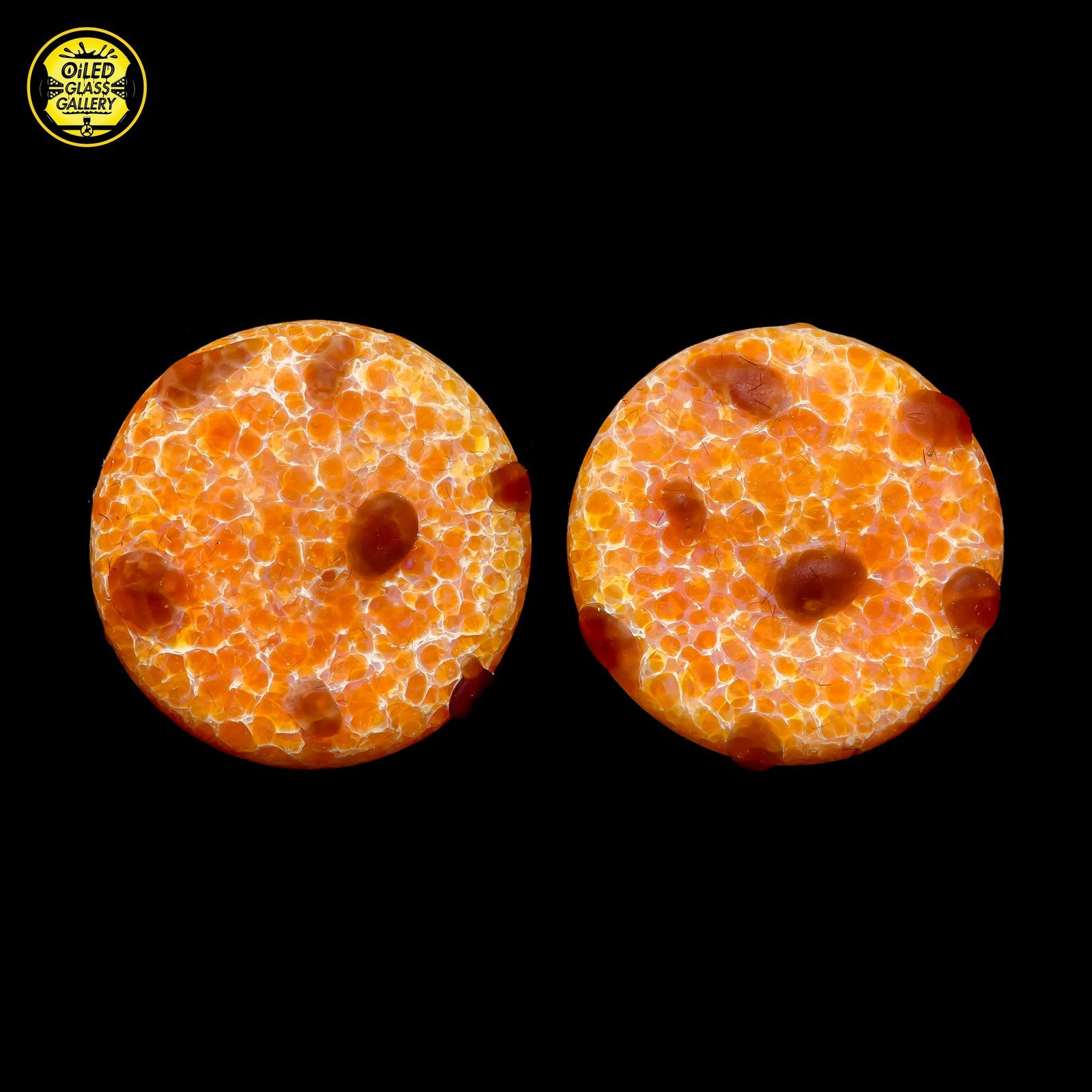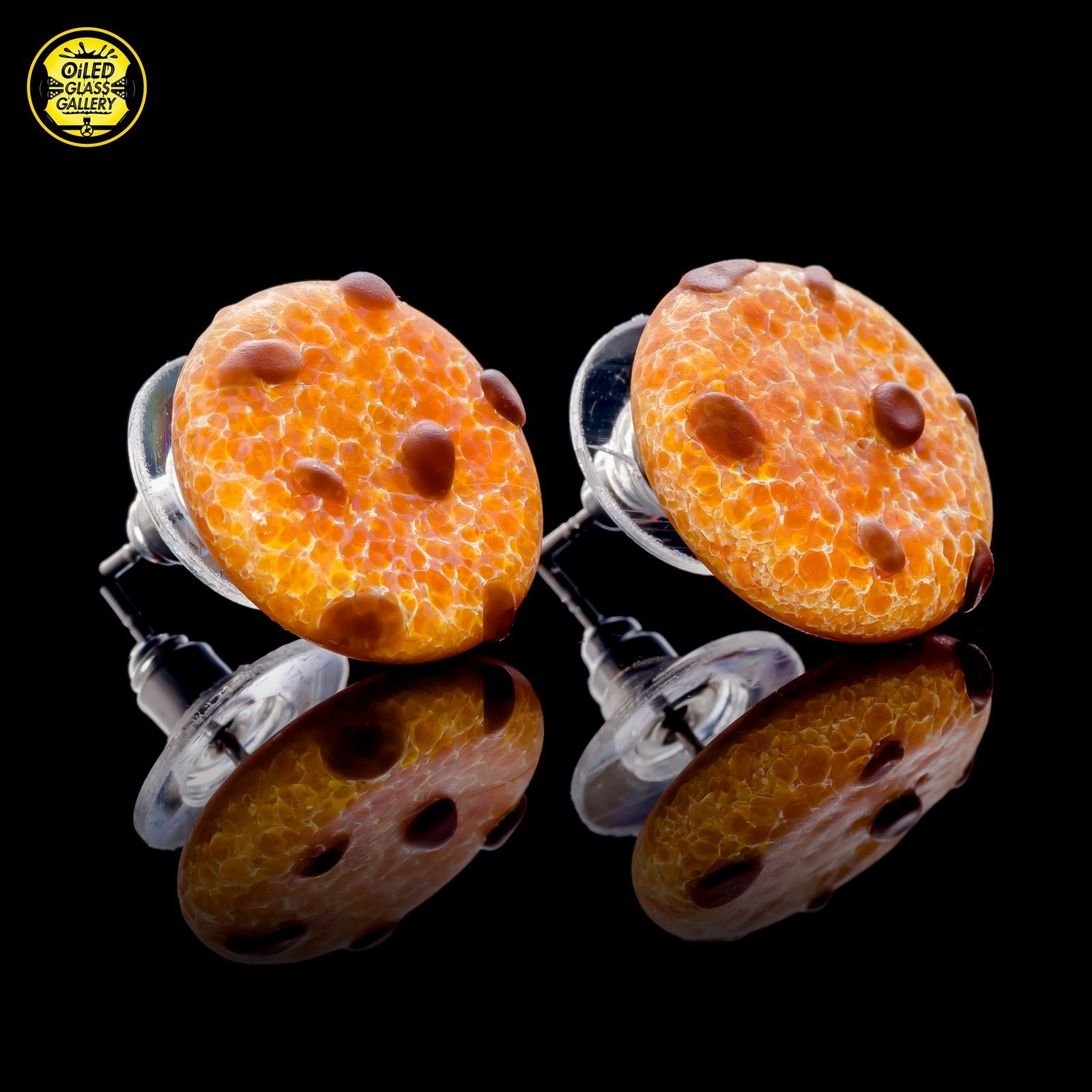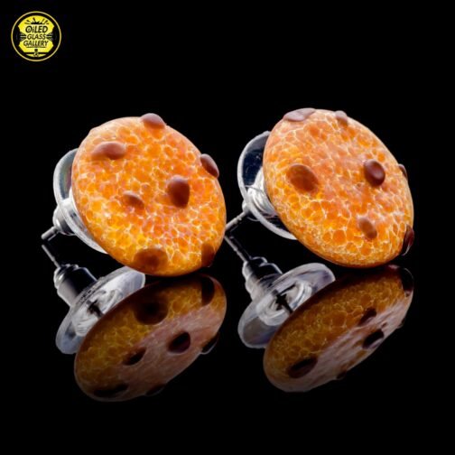 2020 Stud earrings made of sandblasted Glass Alchemy Silver Strike 5 frit with Glass Alchemy Walnut chips.