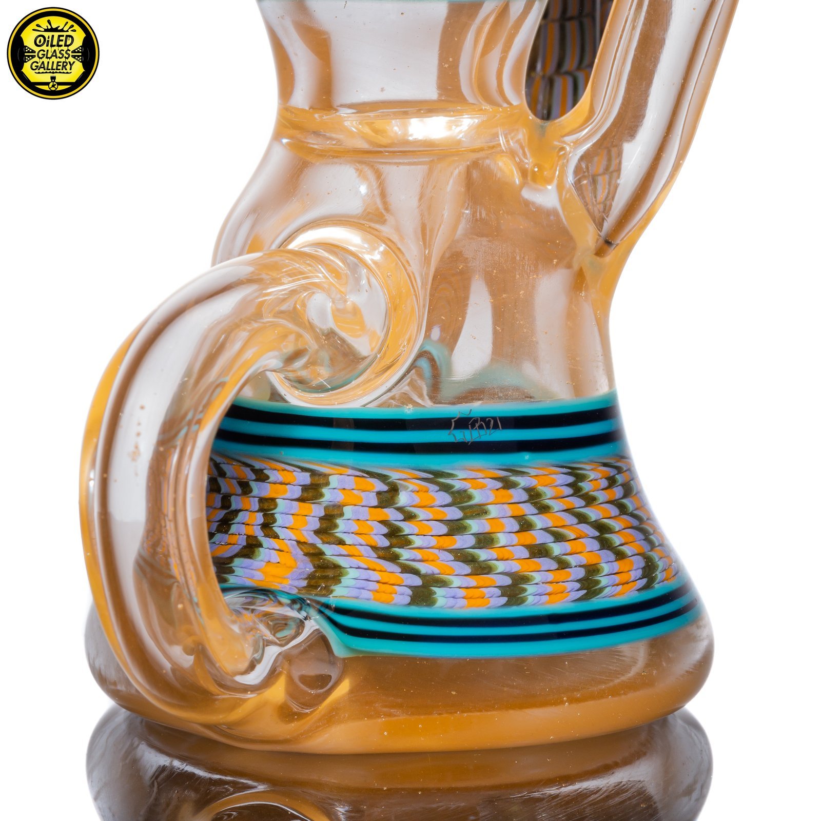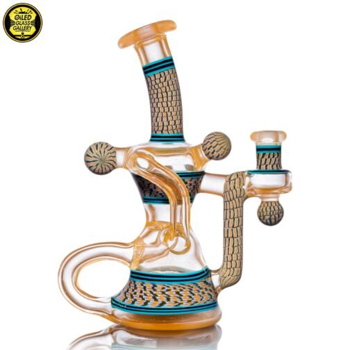 2021 10mm 8in Klein Recycler made of Northstar Glass Peach & Latticino cane featuring latticino mibs mounted on the front and back and shipped in a Black Pelican iM2050 case.