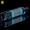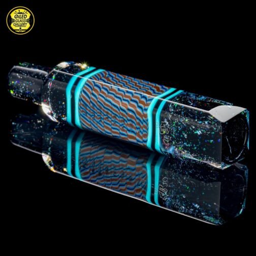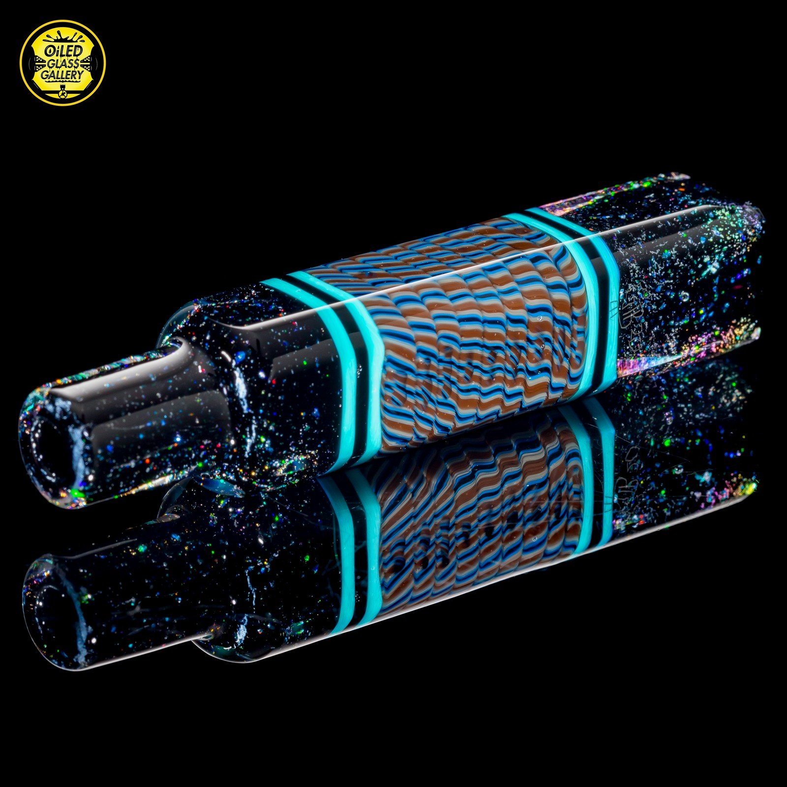 2020 4in Faceted Onnie/Chillum made of Glass Alchemy Eclipse with crushed opal and zanfrico twist cane center section featuring Glass Alchemy Agua Azul and Black lipwraps.