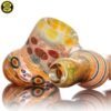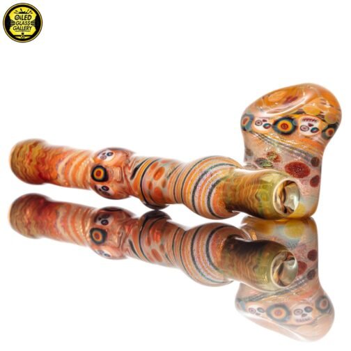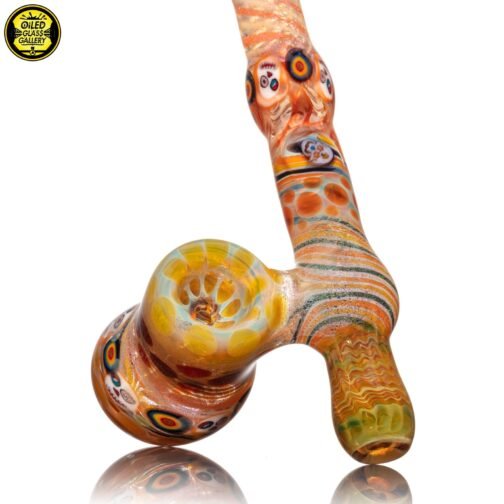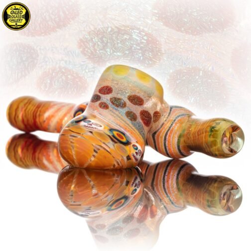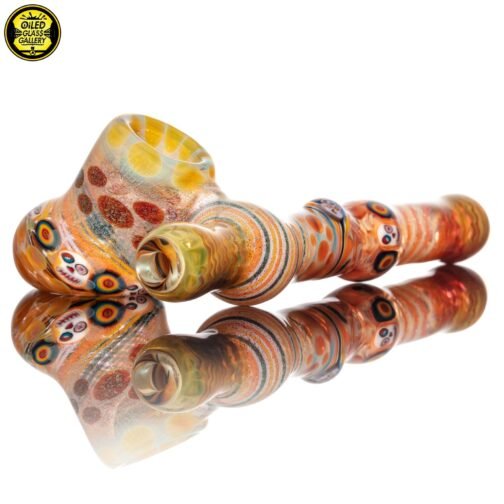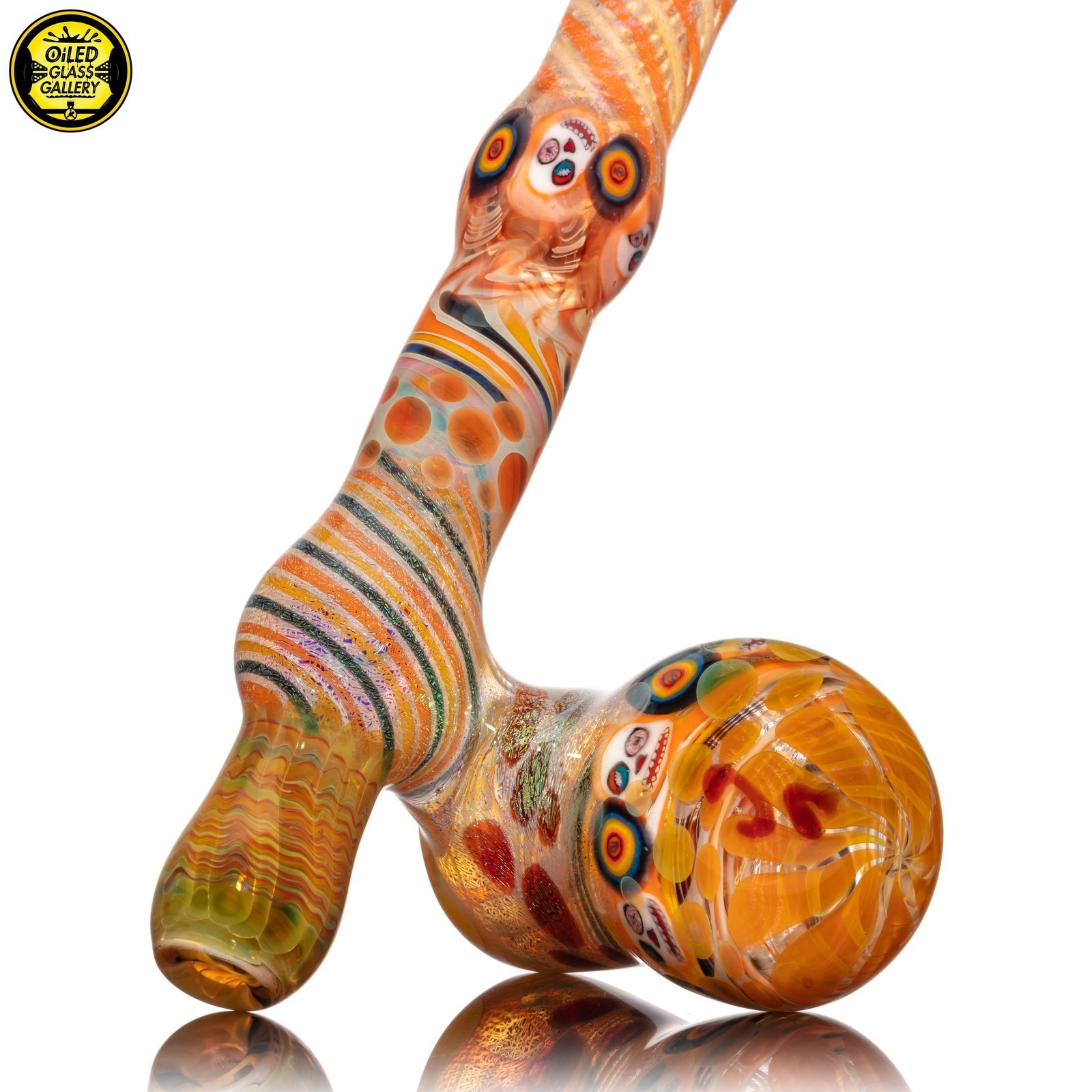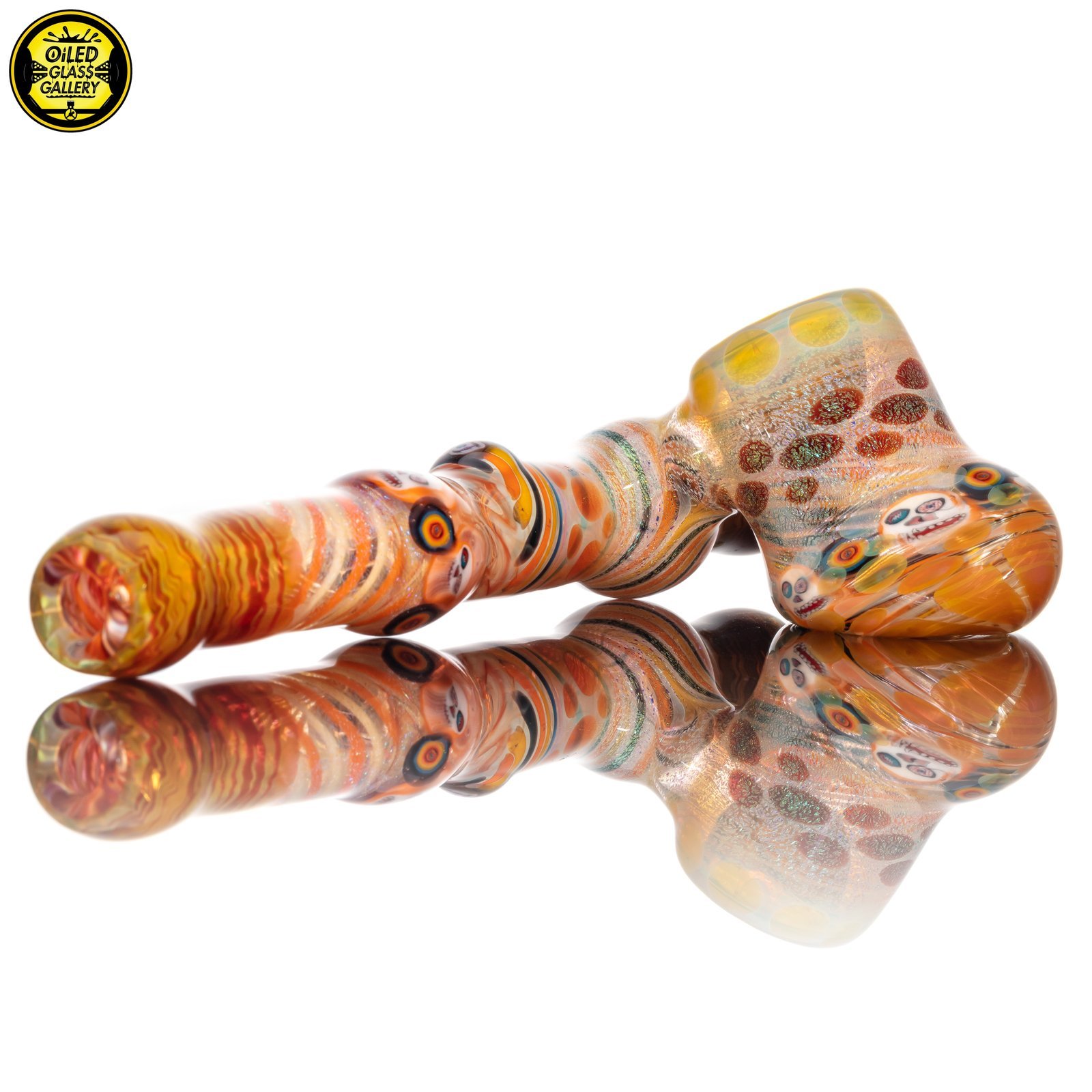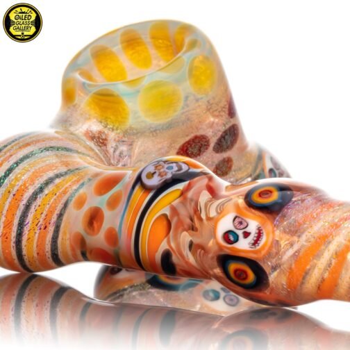 2021 6.75in Sidecar pipe made of Gold and Silver fumed sections sleeved in Dichro featuring 19 skull and cane millefiori.