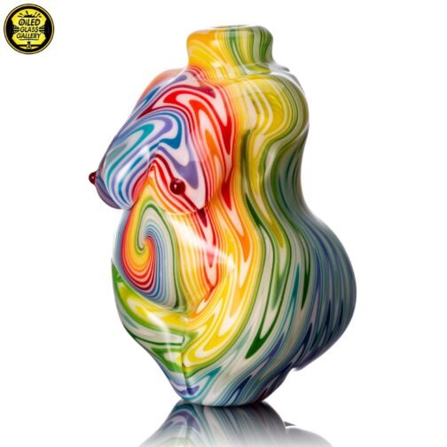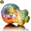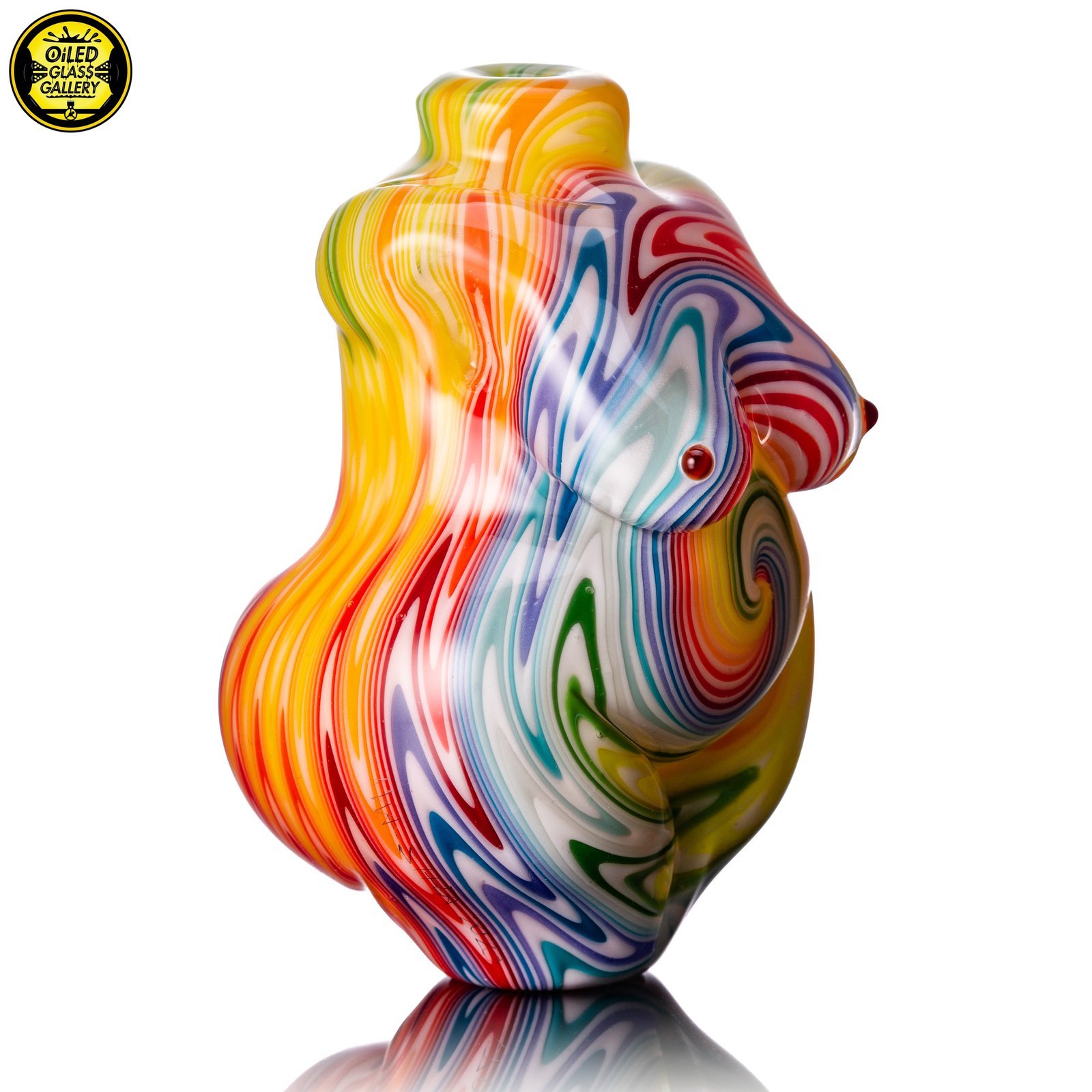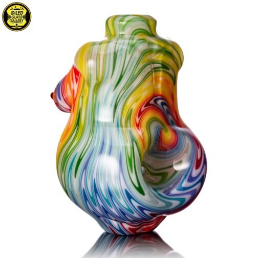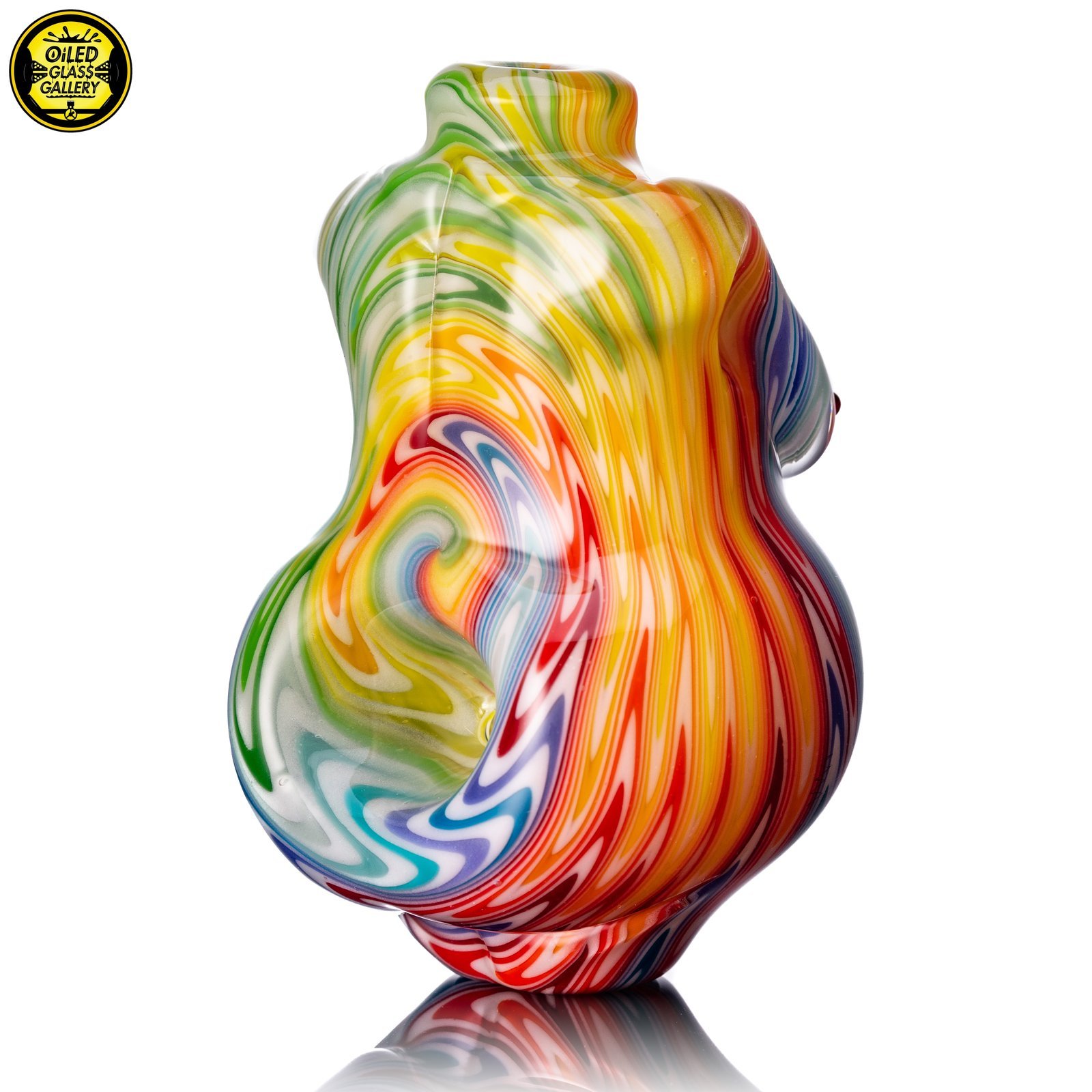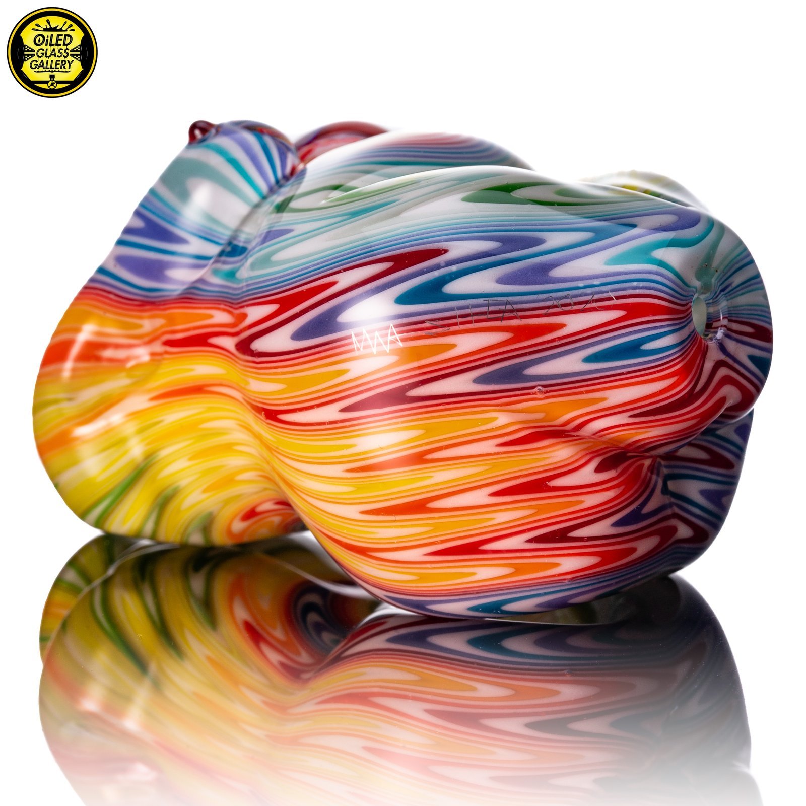2021 3in Lil Mama Spoon Pipe made of Trautman Art Glass Secret White and Rainbow ReWig tubing featuring Red nipples.
