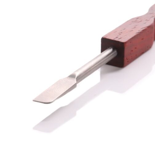 BQ 5.25in Dab Tool featuring a natural wood handle and medical grade 2 Titanium tip with a flat end.