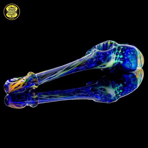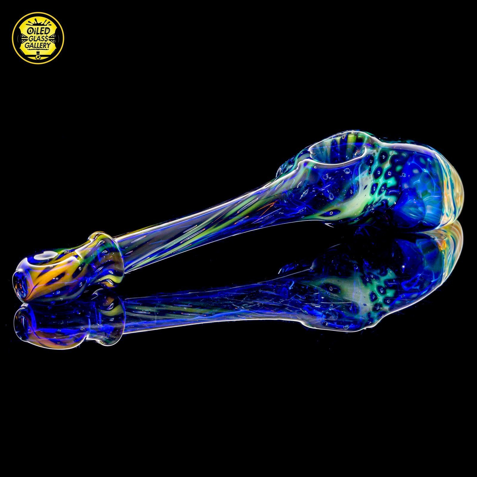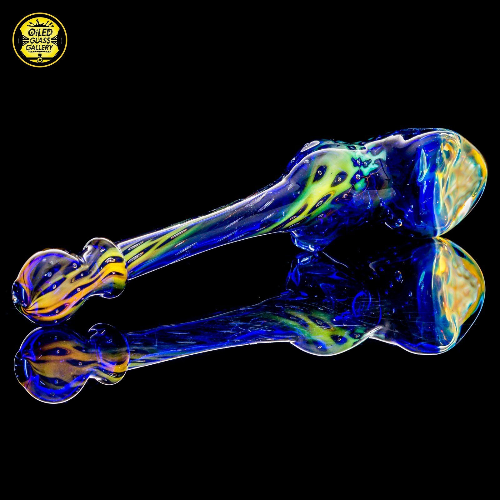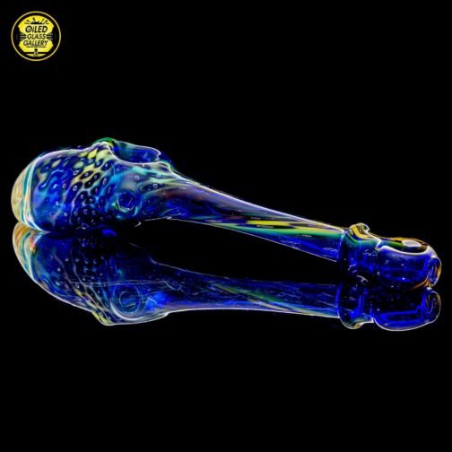 2020 7.25in Hammer pipe made of Gold and Silver fumed bubble trap over Cobalt with a Silver fumed honeycomb base.