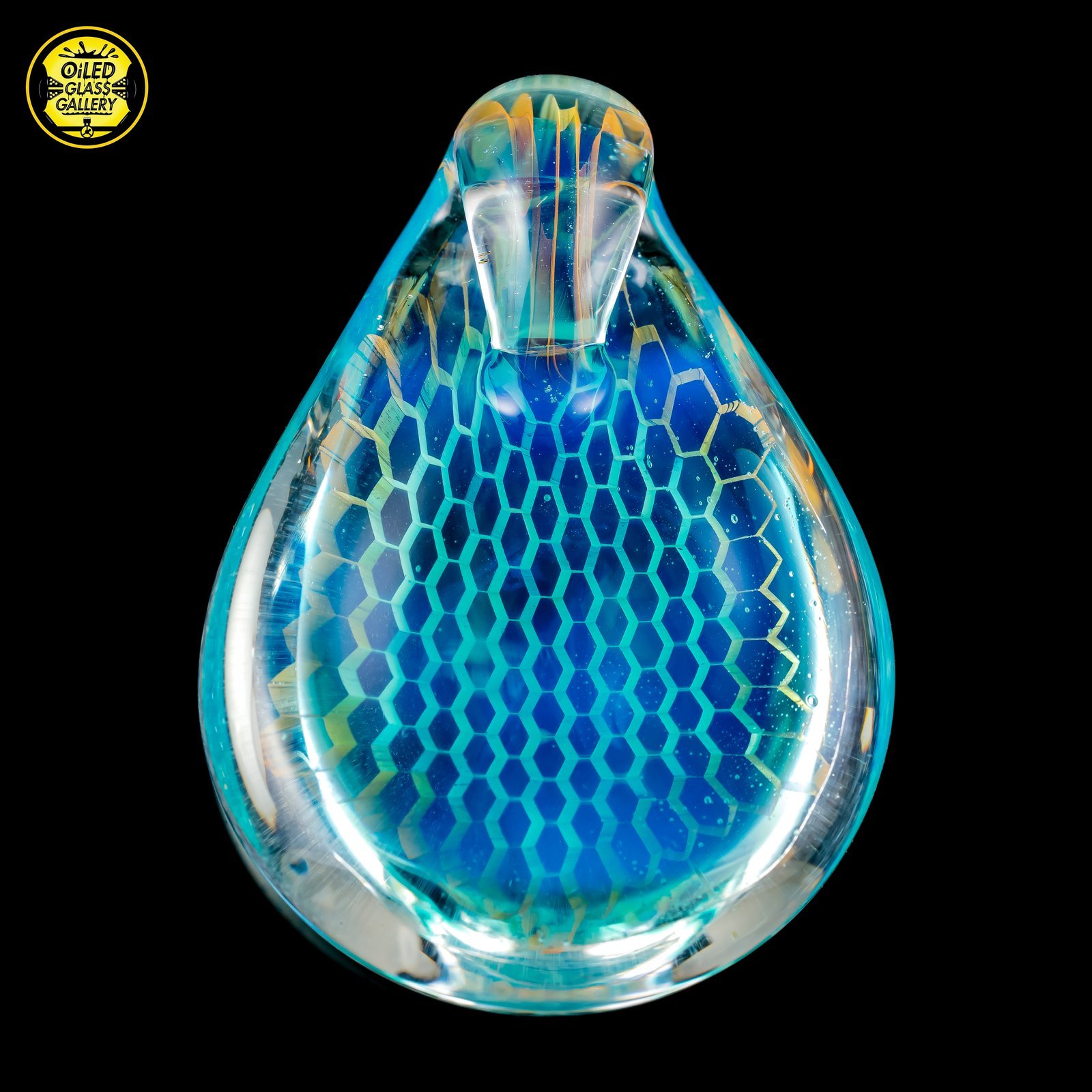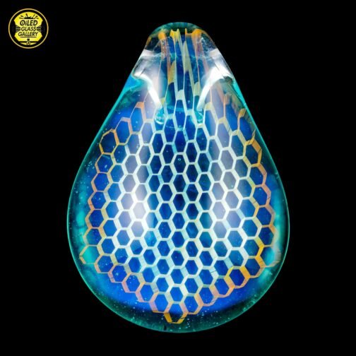 2017 2in x 1.5in Molten Aura Meta-Terrania fumed honeycomb pendant.