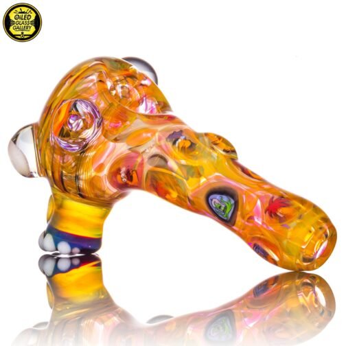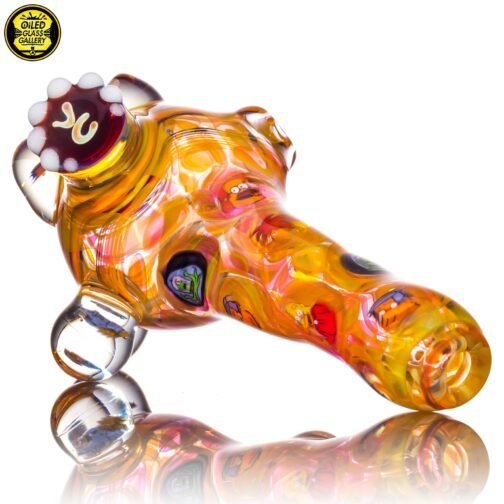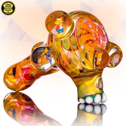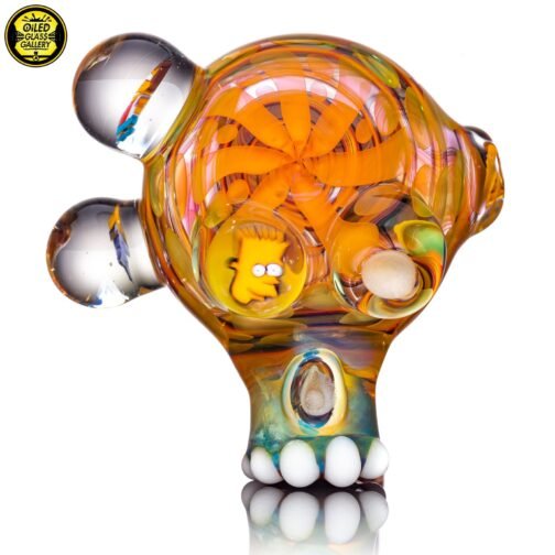 2021 4.5in UV Skull Hammer pipe made of Gold & Silver fume sections featuring 13 encased Simpsons millefiori and 2 Squidbillies millefiori.