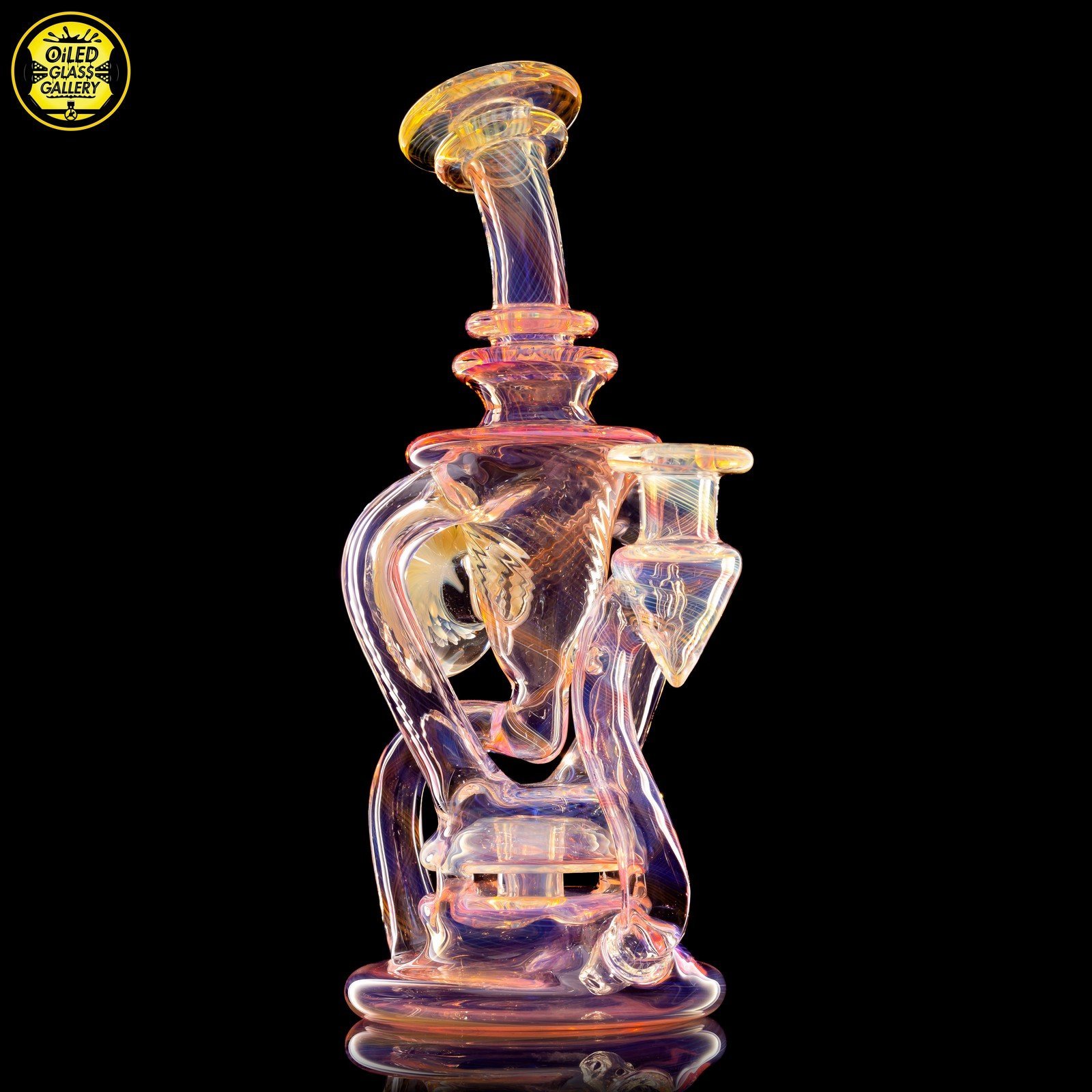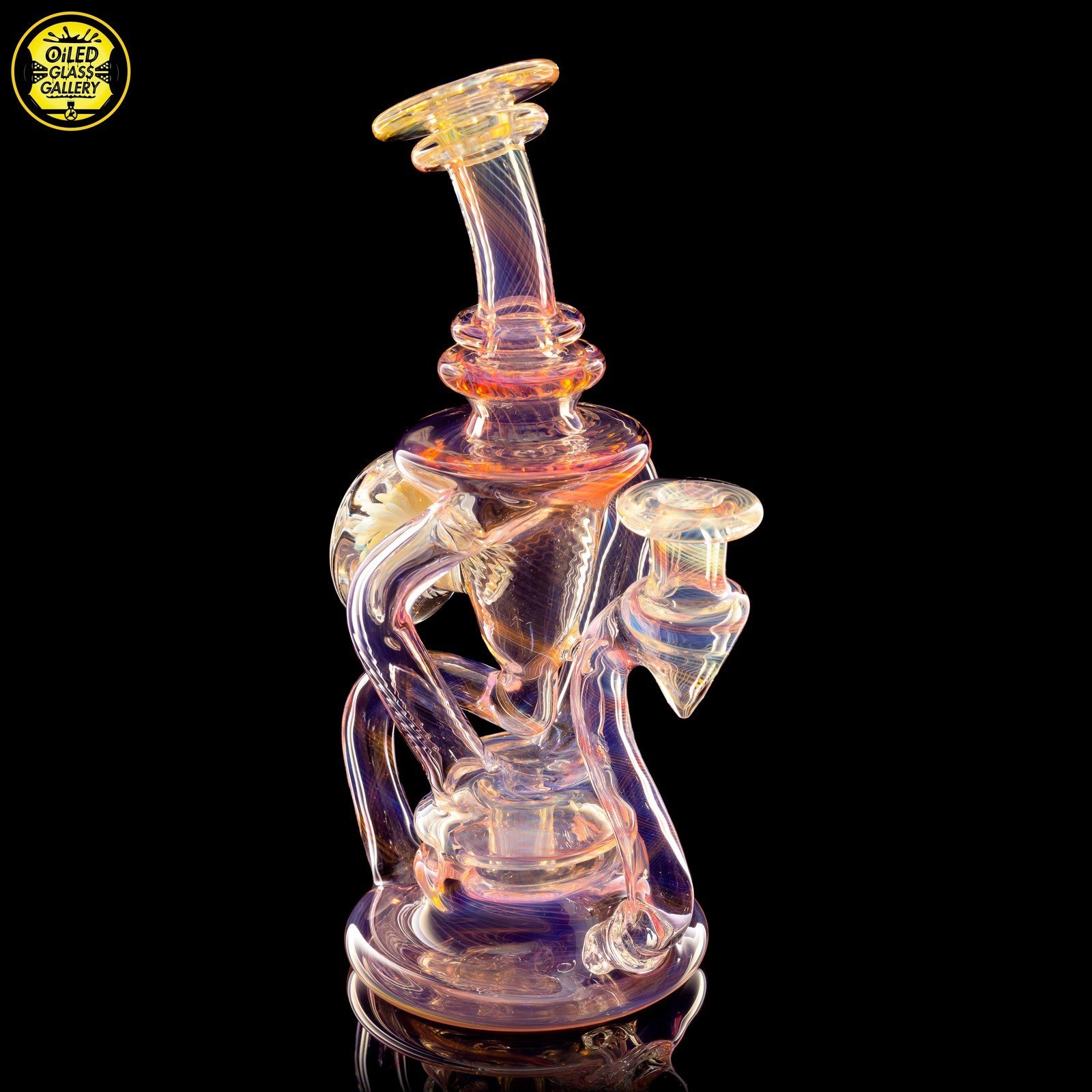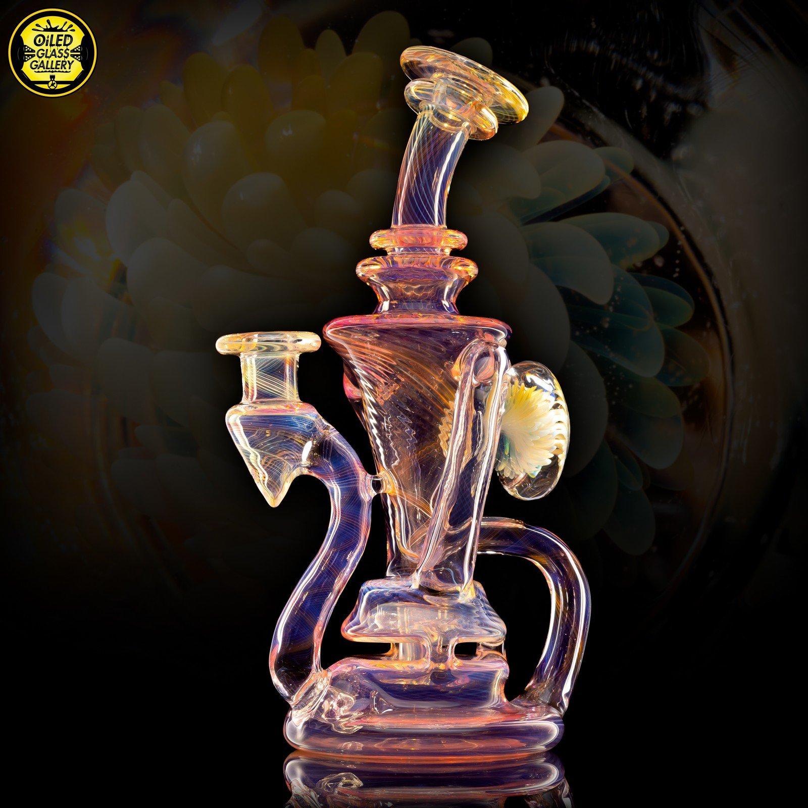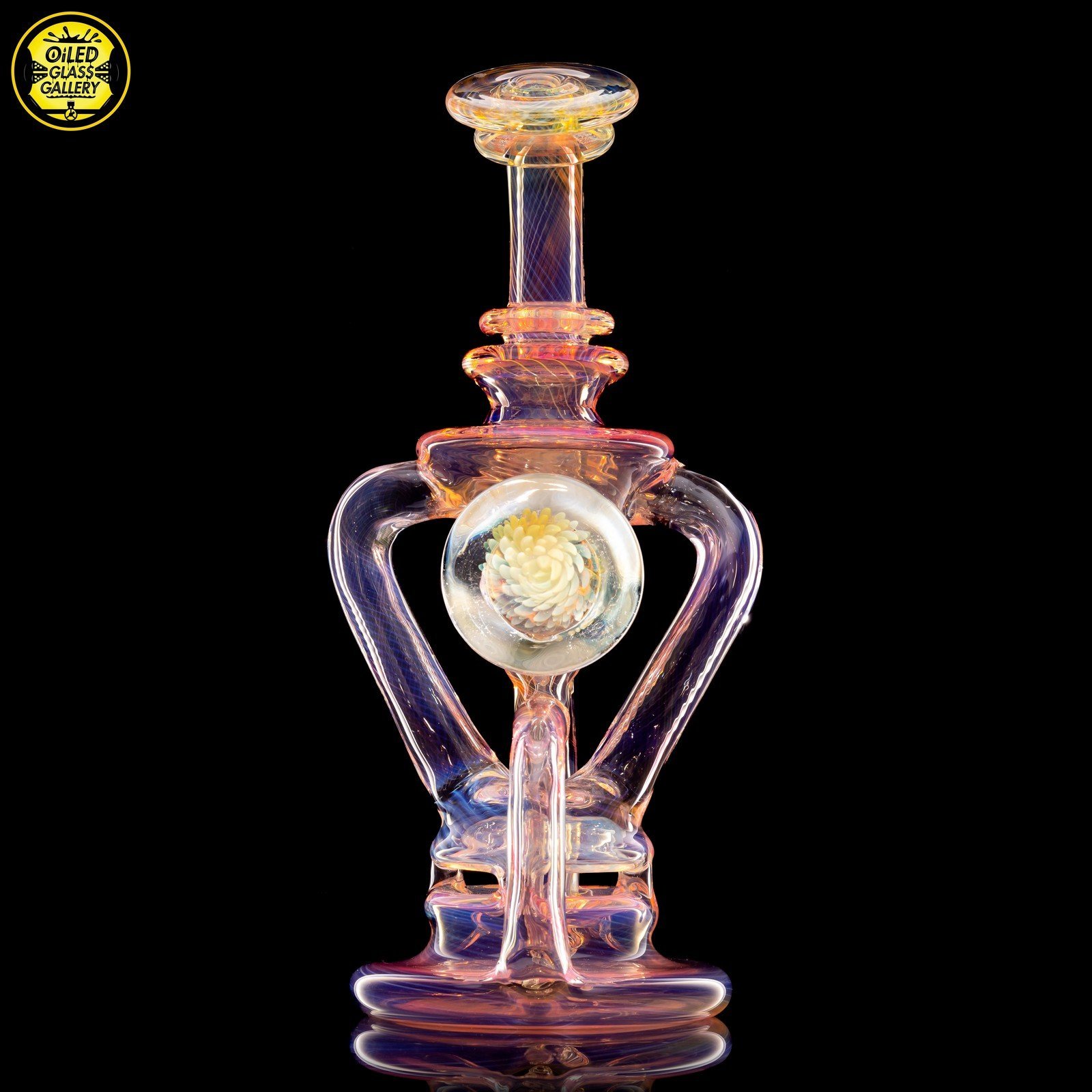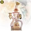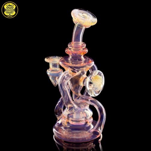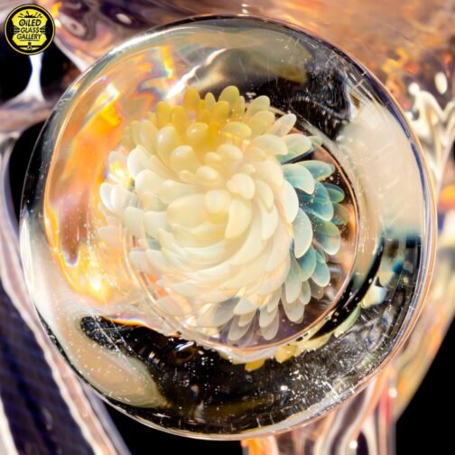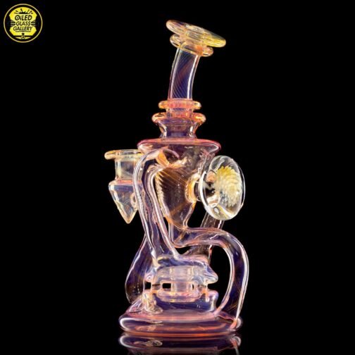 2021 10mm 7.5in Gold and Silver fumed scalloped “Yo-Yo” recycler with fume implosion cabochon on the back. Comes shipped in an Orange Apache 2800 case.