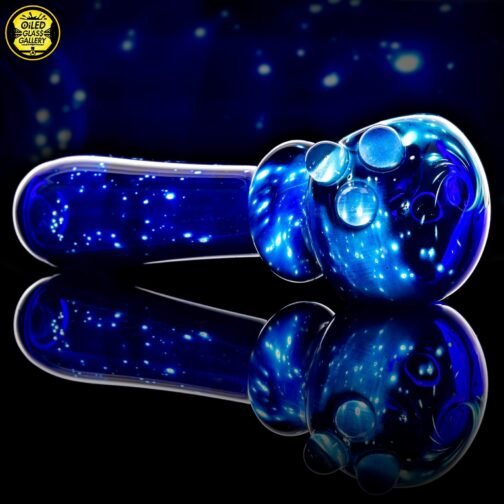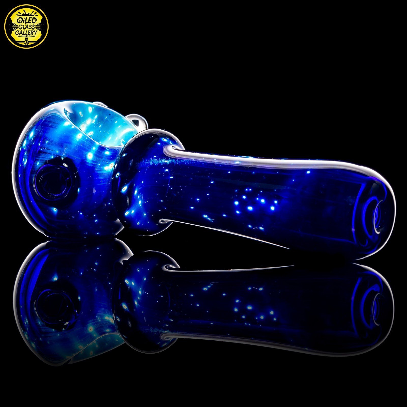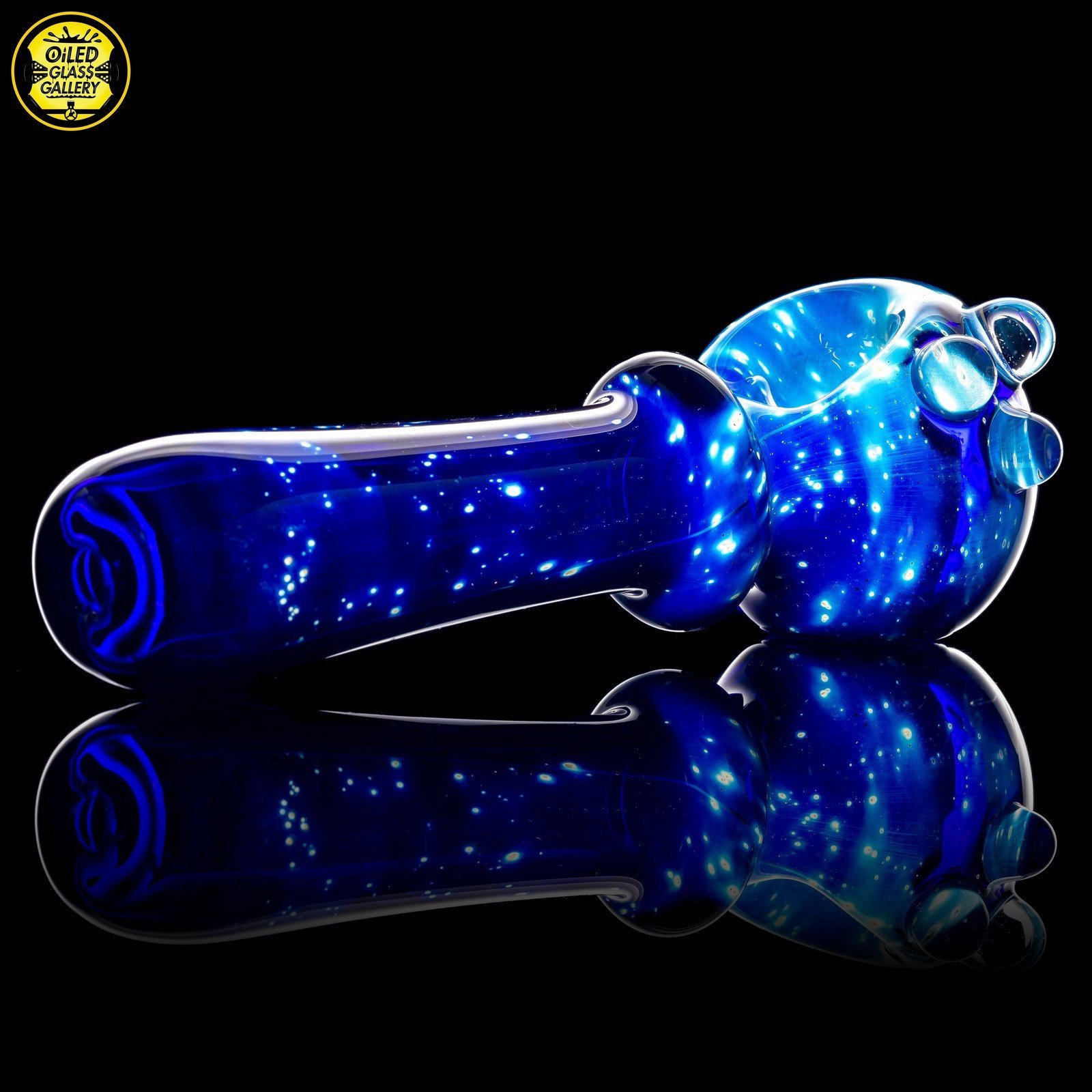 2020 4.25in Spoon pipe made of Stargazer fume over Cobalt Blue with 3 clear mibs on the side.