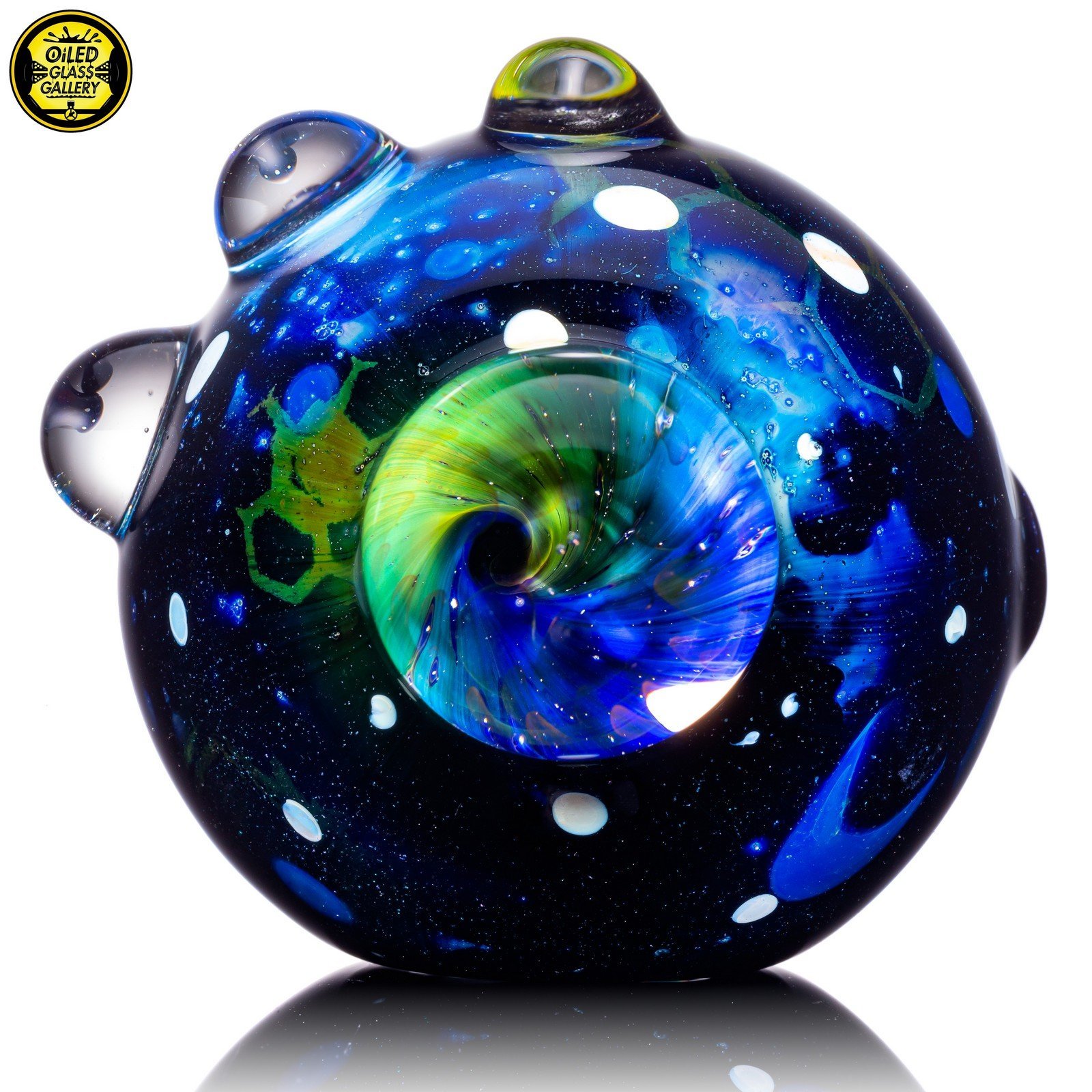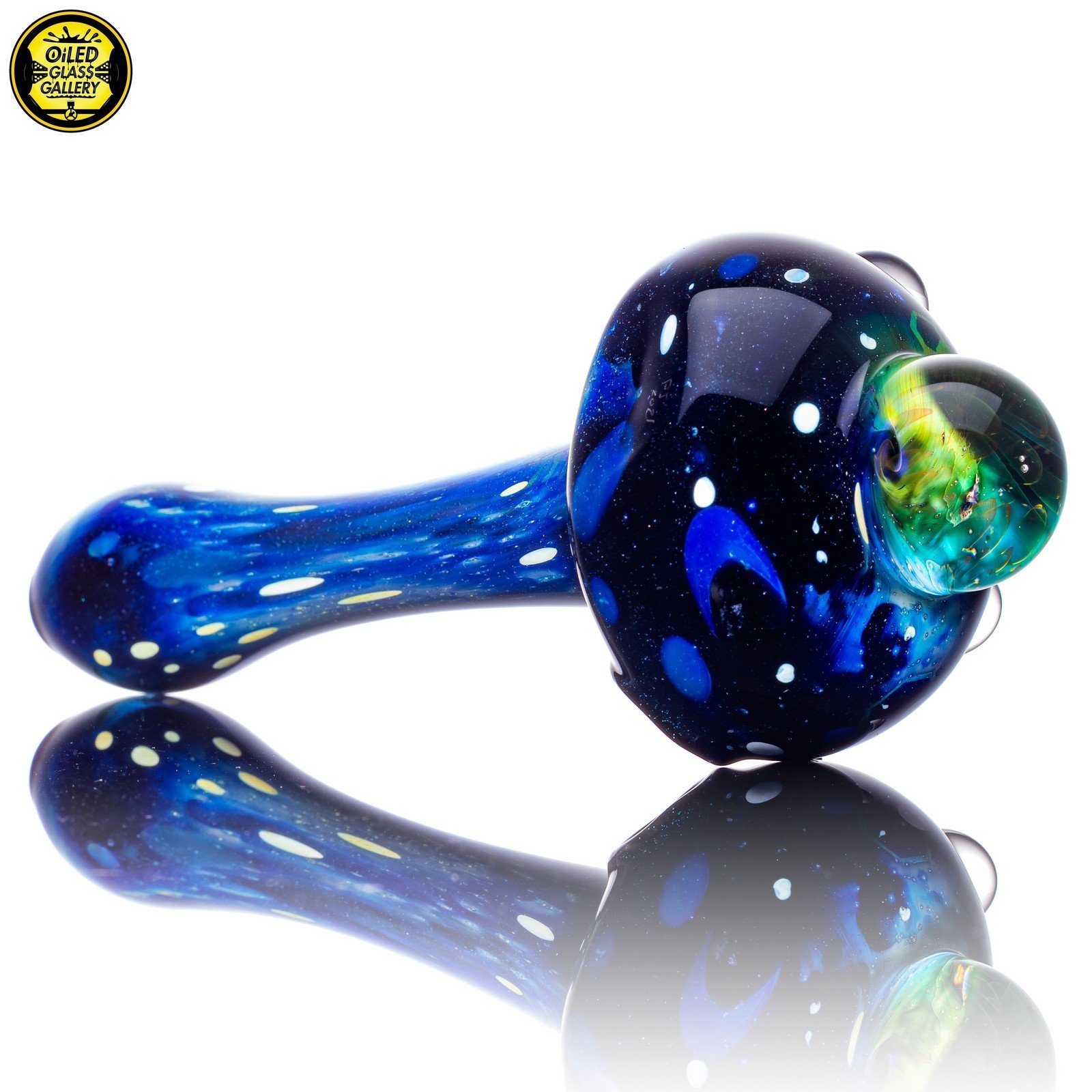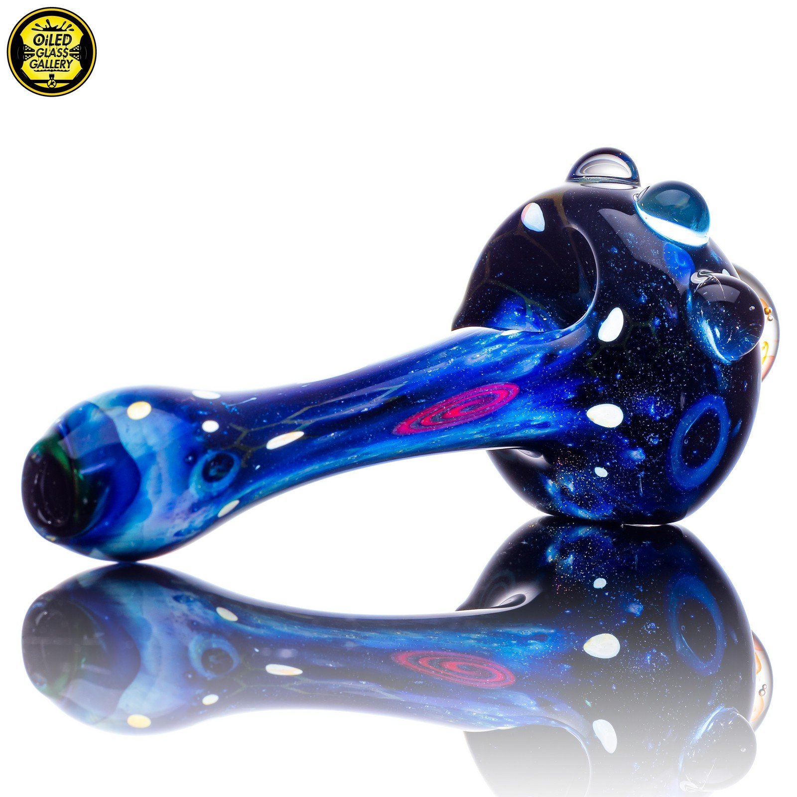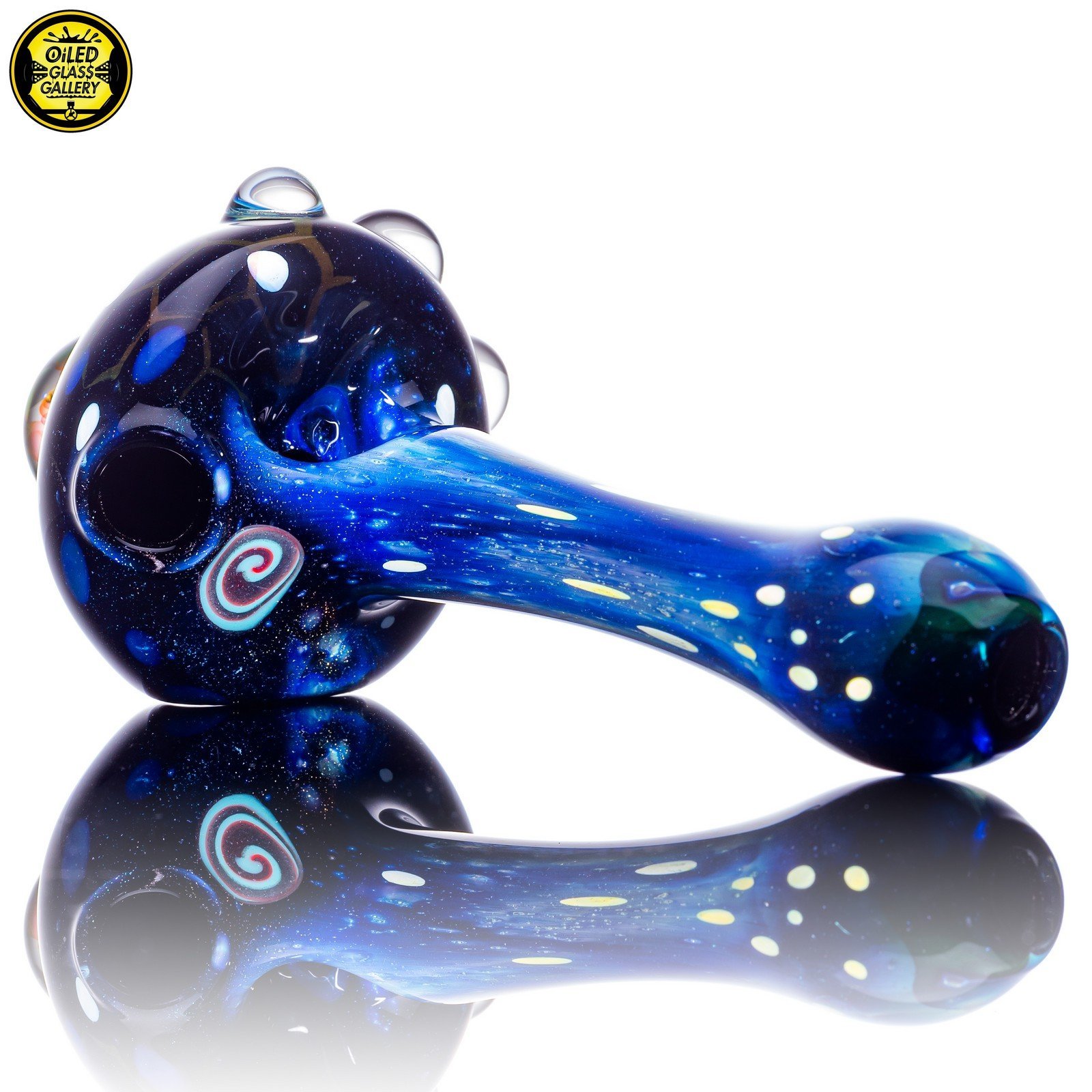 2021 5.5in Spoon pipe made of Spacetech fume over Cobalt Blue with thumbies & fumed honeycomb patterns featuring a fume swirl implosion mib at the end.