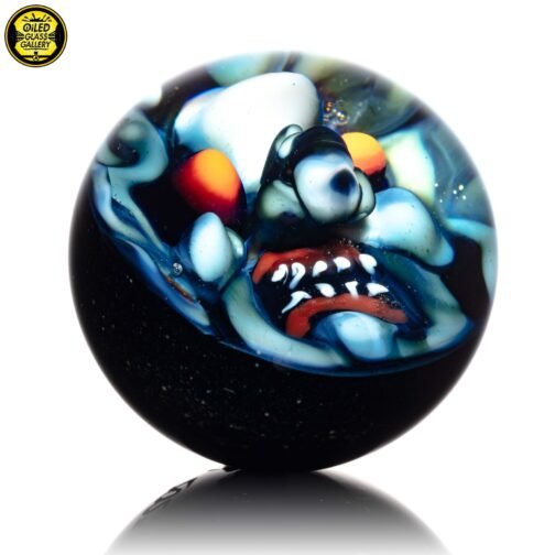 2023 50mm/1.97in Goblin Face Implosion Marble with sparkly frit backing.
