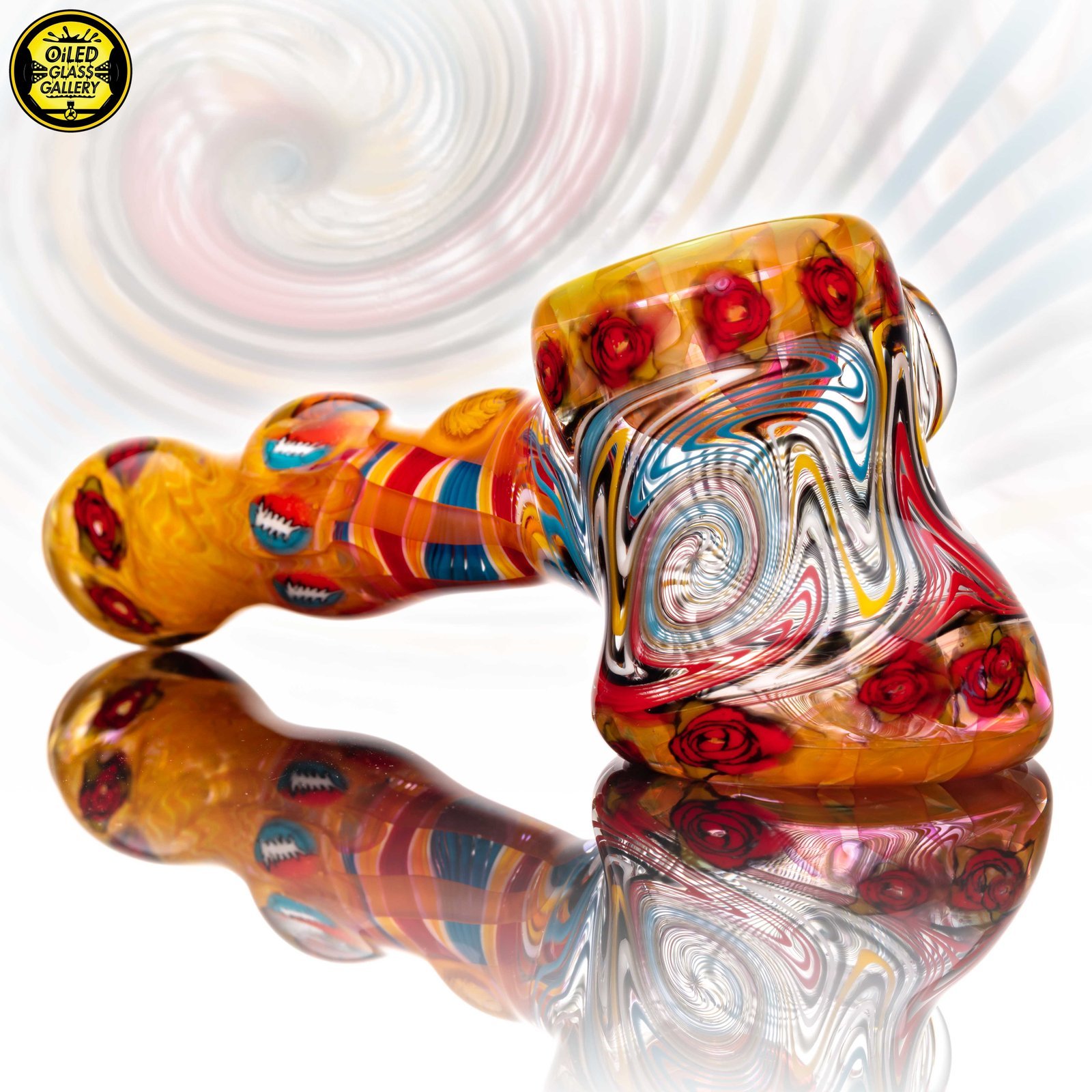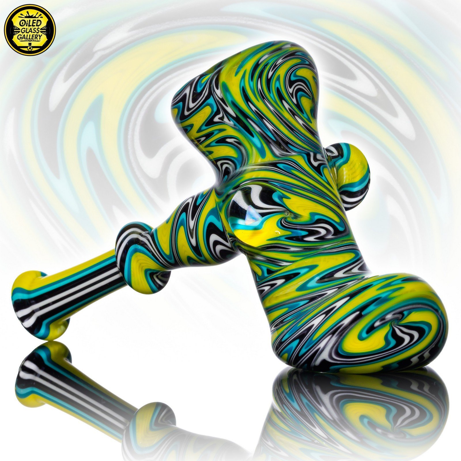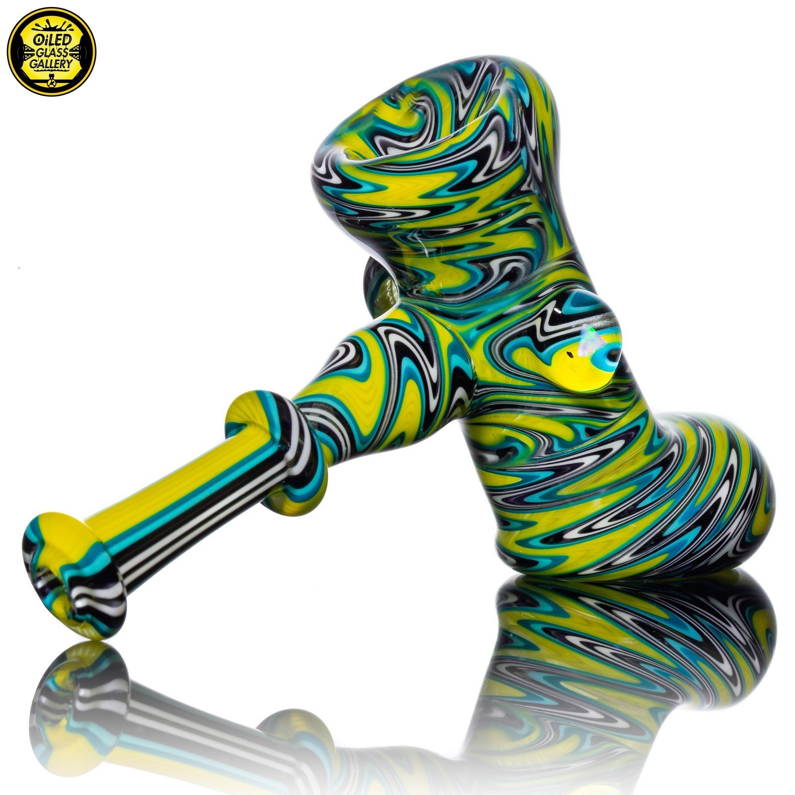 2021 4.75in Hammer pipe made of Green & Wig Wag with opal encased mib.