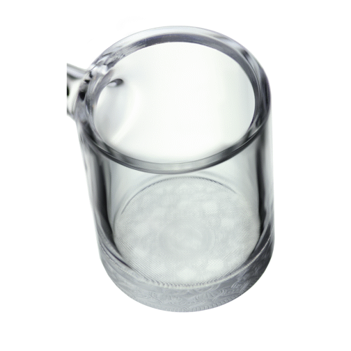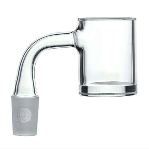 SE Gavel 30mm Quartz Banger. The Gavel SE features the new Surface Enhanced quartz floor. The surface is engineered to substantially improve the efficiency of the oil vaporization process by increasing surface free energy, decreasing liquid surface tension, promoting nucleate boiling and rapidly increasing evaporation rates. The enhancements were designed to be both extremely durable and easy to clean. While we recommend iso for cleaning any nail; maintenance can be managed with dry cotton swabs. This is different from the opaque which required iso alcohol maintenance to avoid black carbon spots. The bottom is engraved and that engrave becomes visible through the top of the bucket when the surface is wet. When the floor is dry, the engrave is again hidden by the opacity of refracting light.