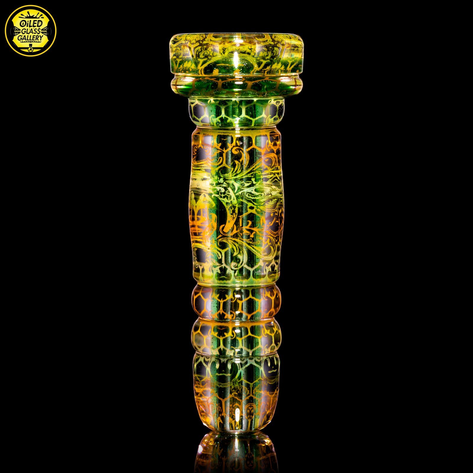 2021 3in “Hive” Hologram fumed Onnie/Chillum made with Clear over Shamrock.
