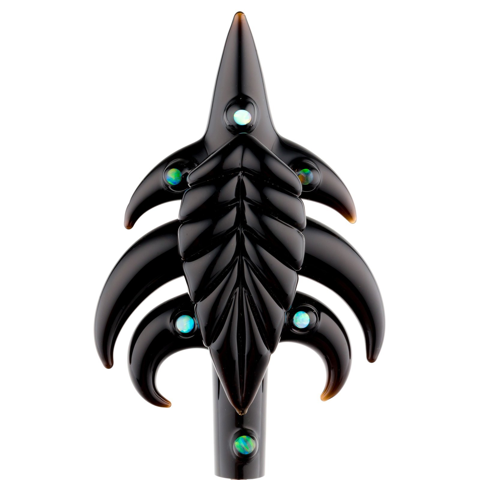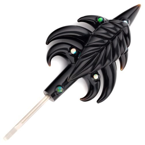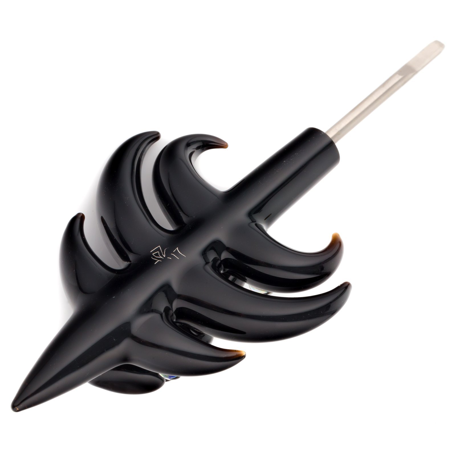 2017 4.25in Horn and Leaf Dabber made of Trautman Art Glass Black Jack with a medical grade 2 Titanium tip featuring 6 encased 3mm opal spheres.