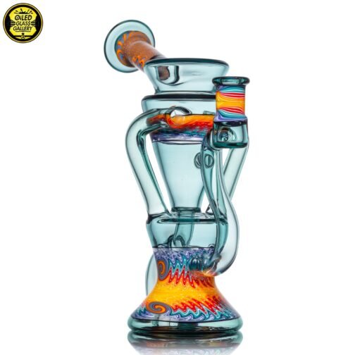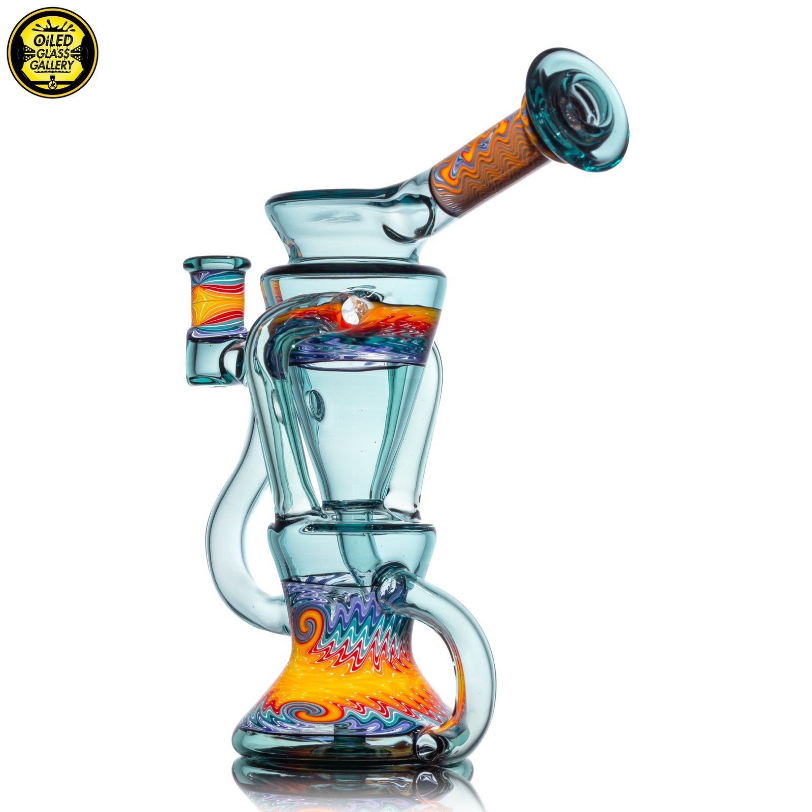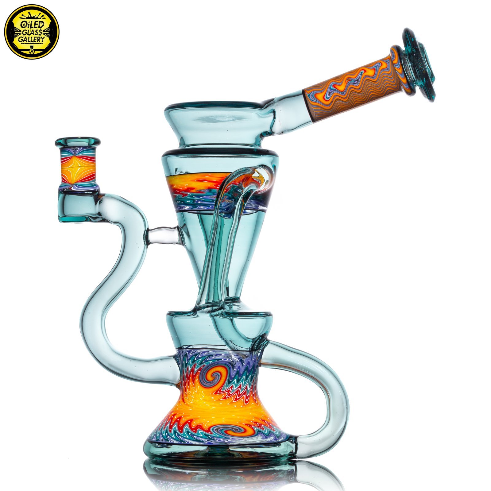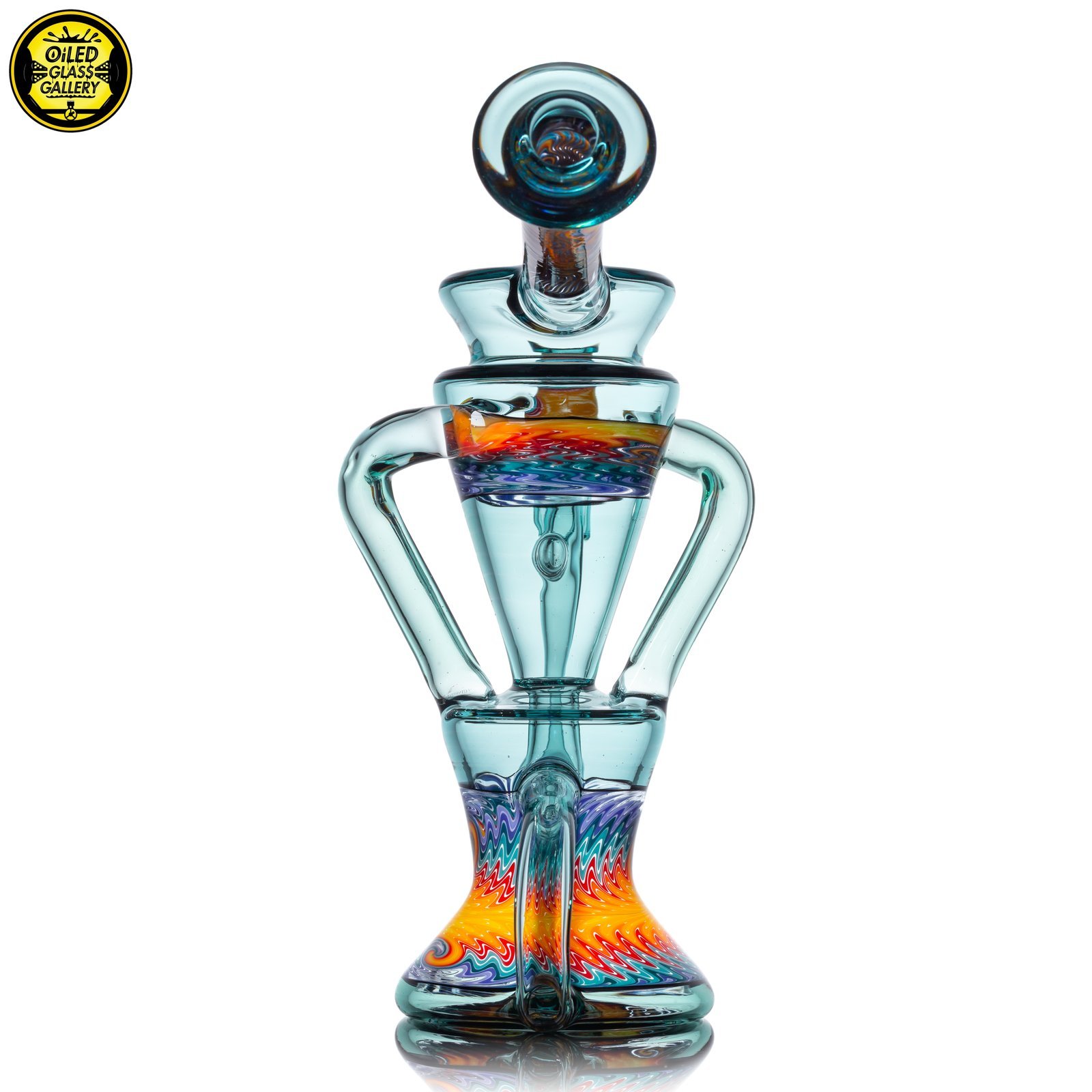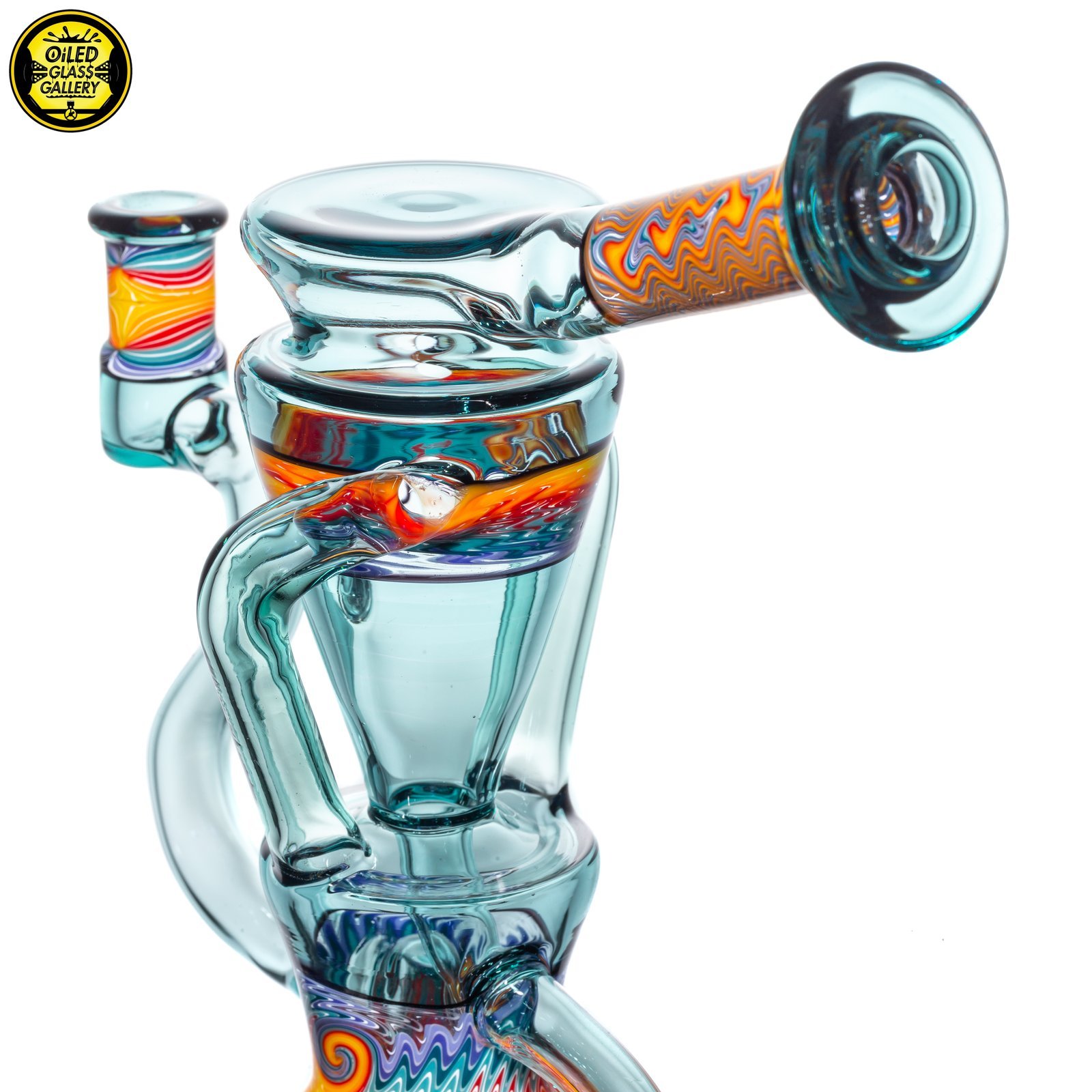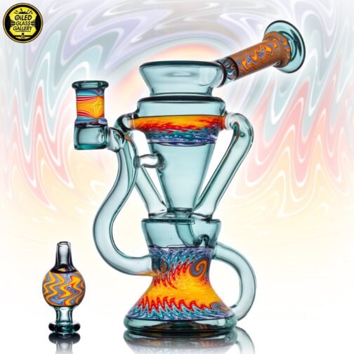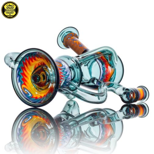 2021 10mm 8in Klein Recycler made of Northstar Glass Nemo with Fire & Ice sections featuring a matching bubble cap and comes shipped in a Blue Pelican 1400 case.