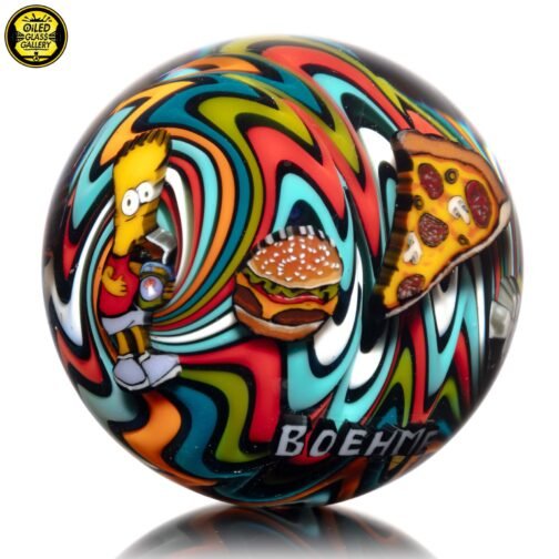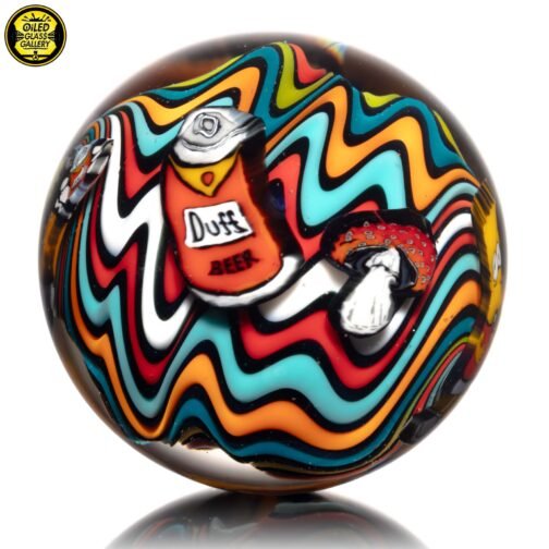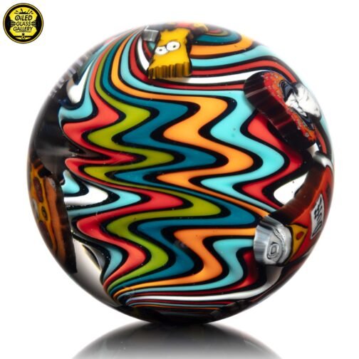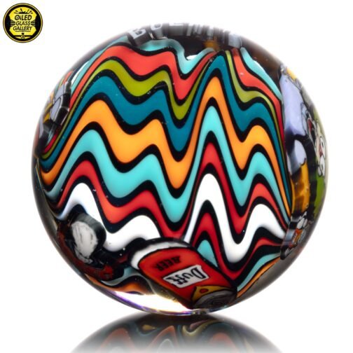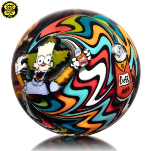 2023 54.5mm/2.15in Krusty the Clown Millefiori Rainbow Wig Wag Marble featuring a signature Boehme millefiori.