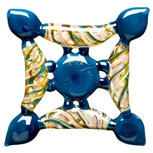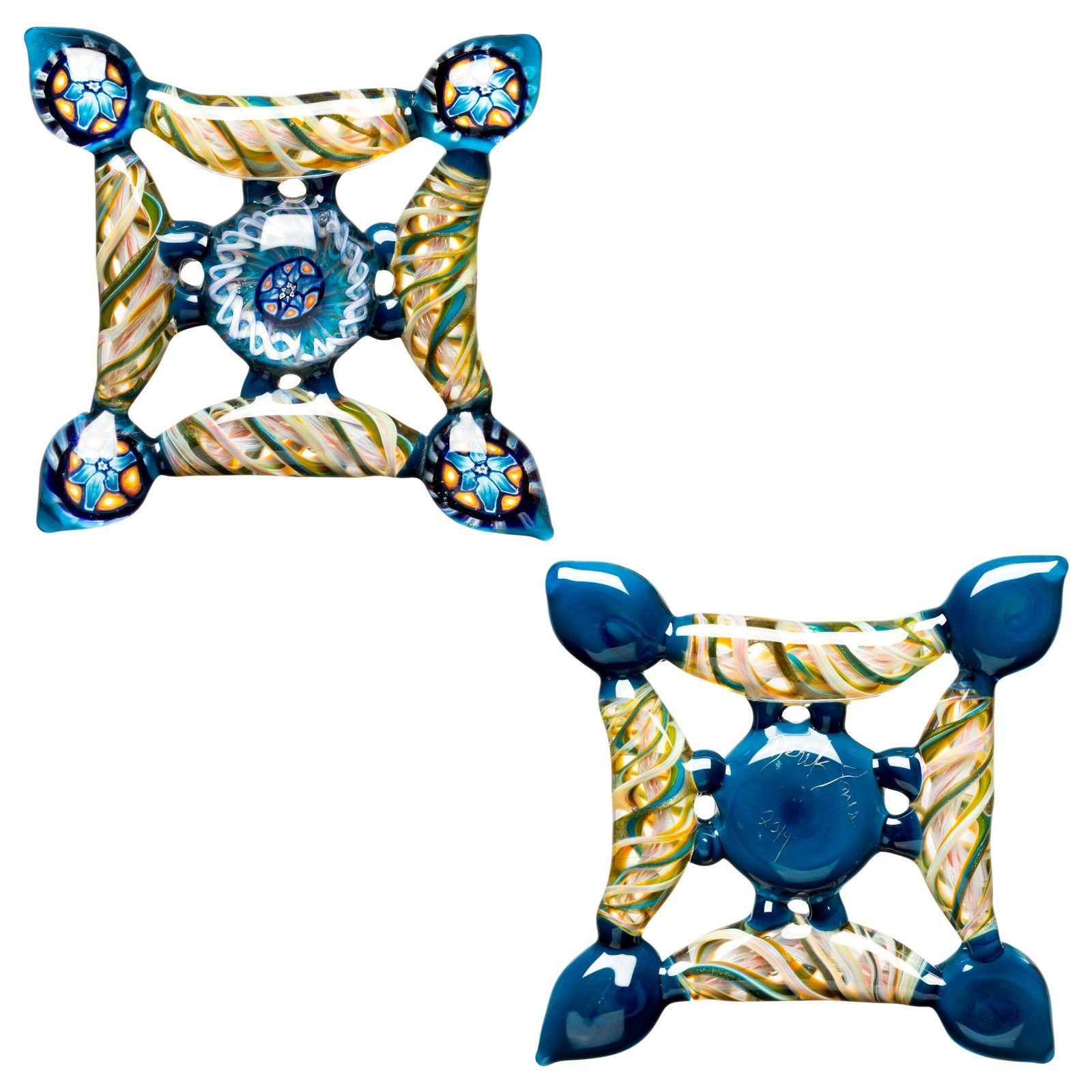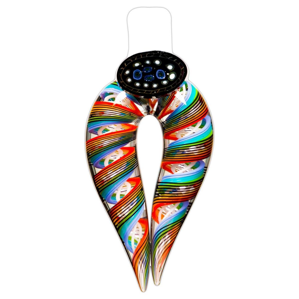 2014 3in x 3in Latticino Twistcane Mandala Pendant featuring 5 encased millefiori.
