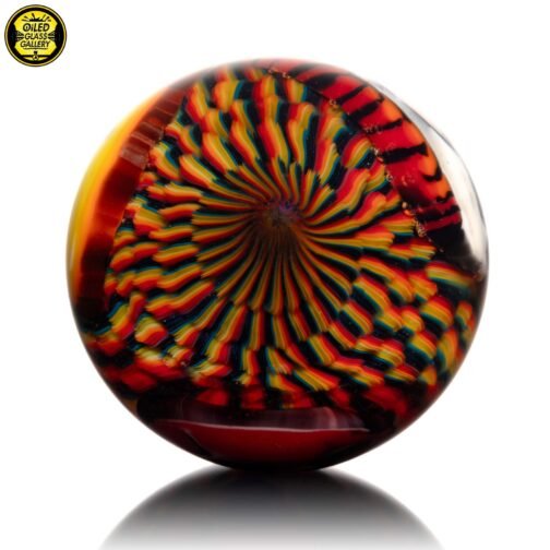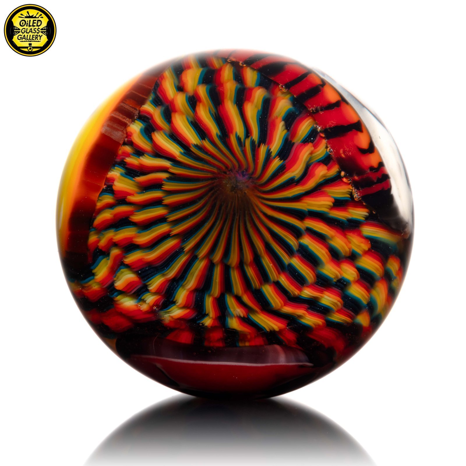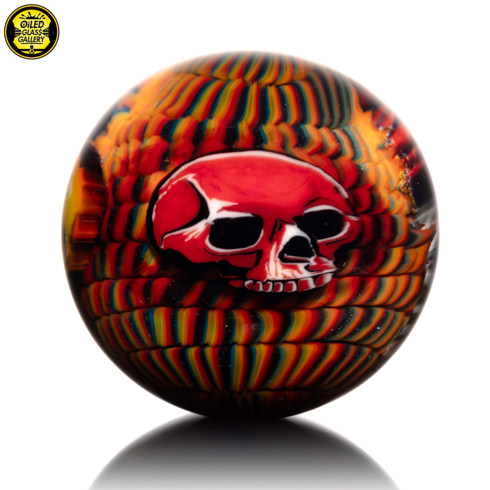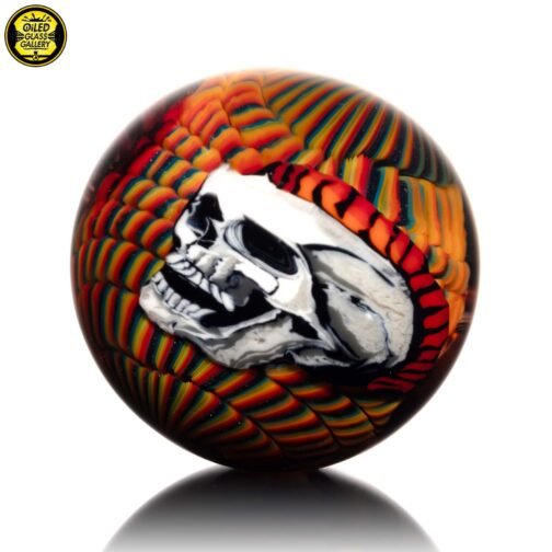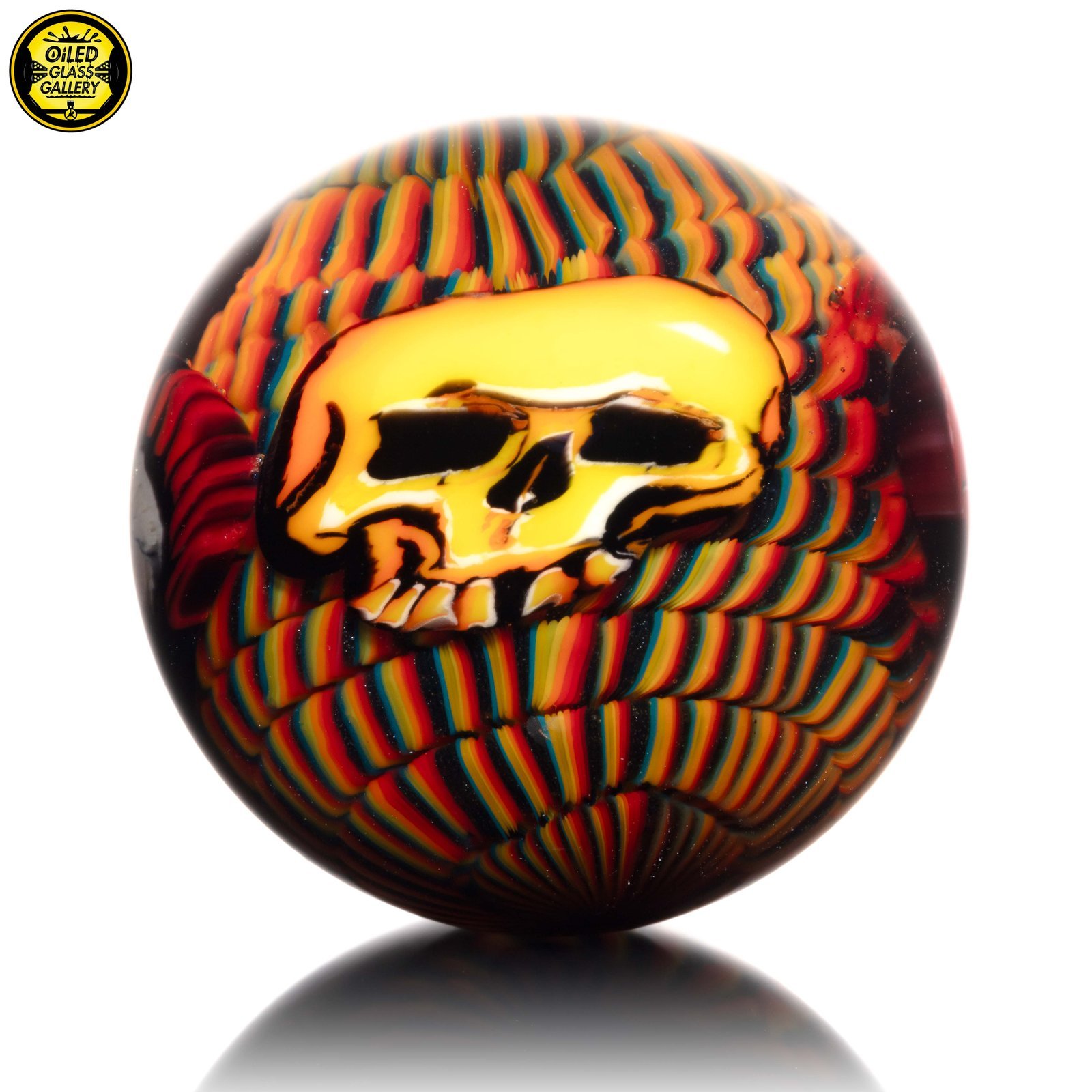 2023 34mm/1.35in Latticino Cane roll up marble with Stephen’s incredible Skull millefiori.