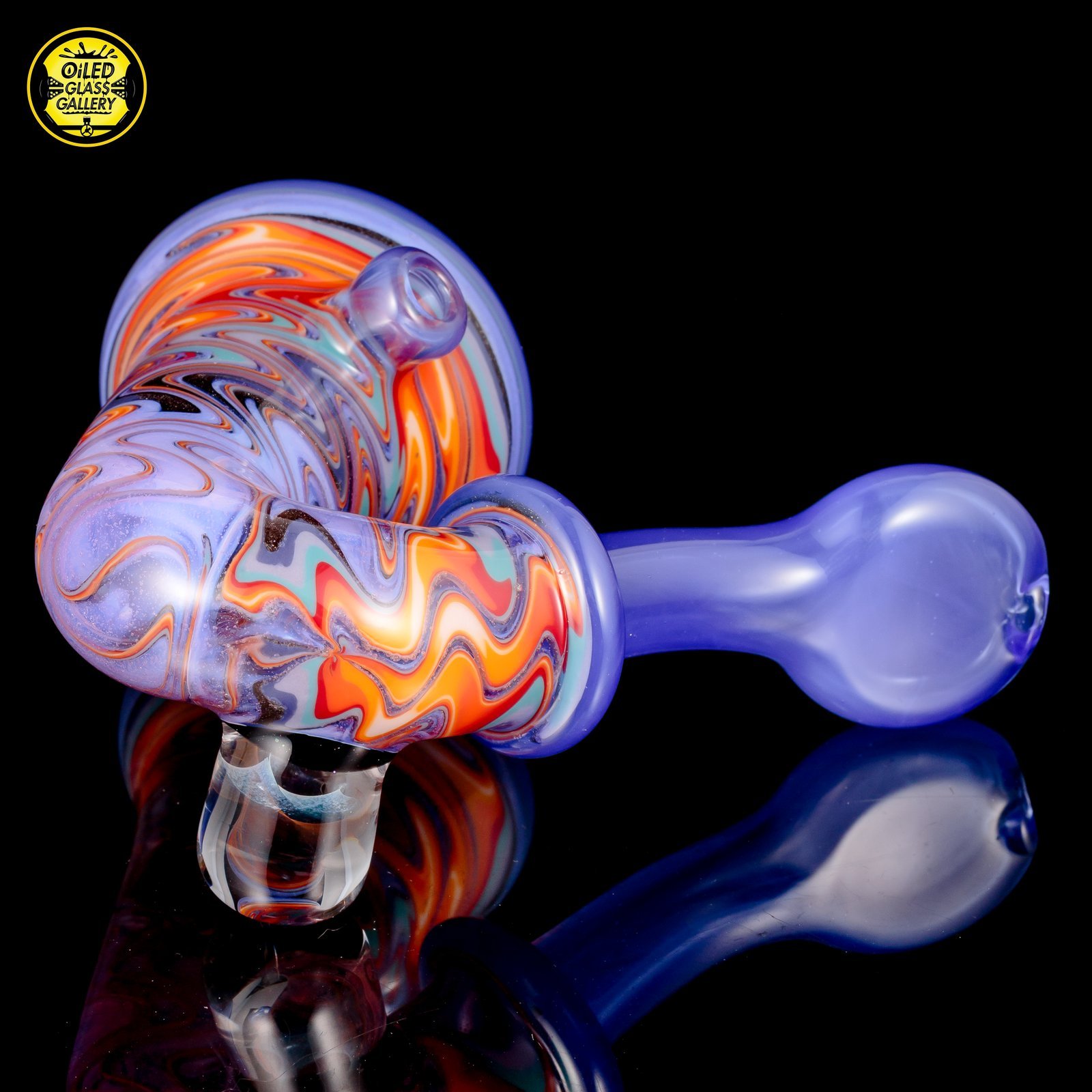 2020 4.25in Linework Sherlock made of Northstar Glass Opaques Fire Fade with Molten Aura Telemagenta and Glass Alchemy Mystique featuring a fumed swirl mib.