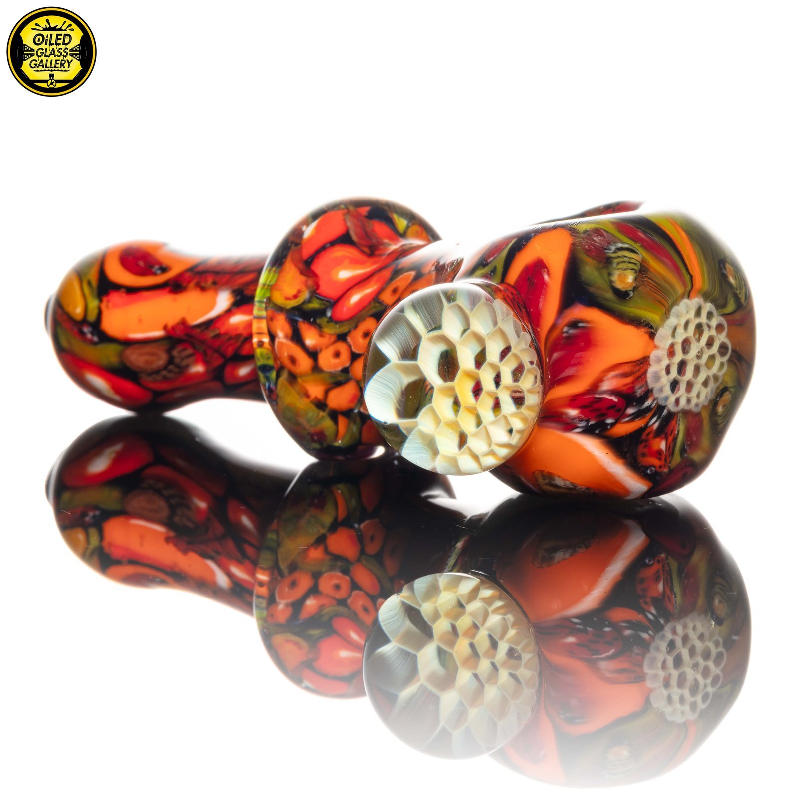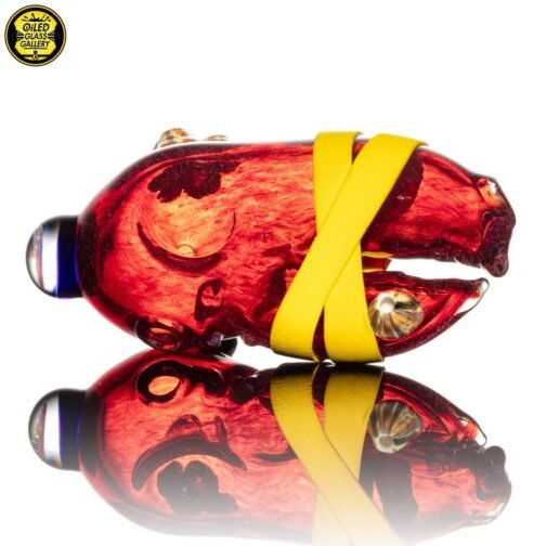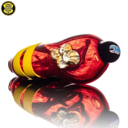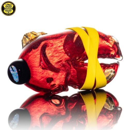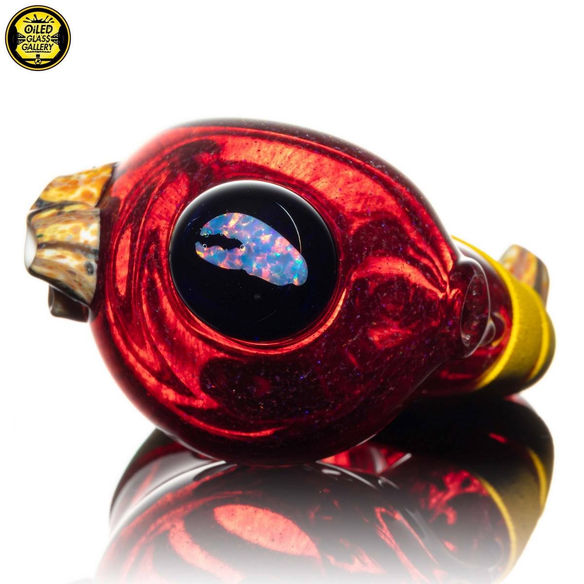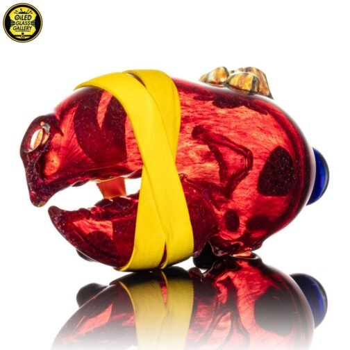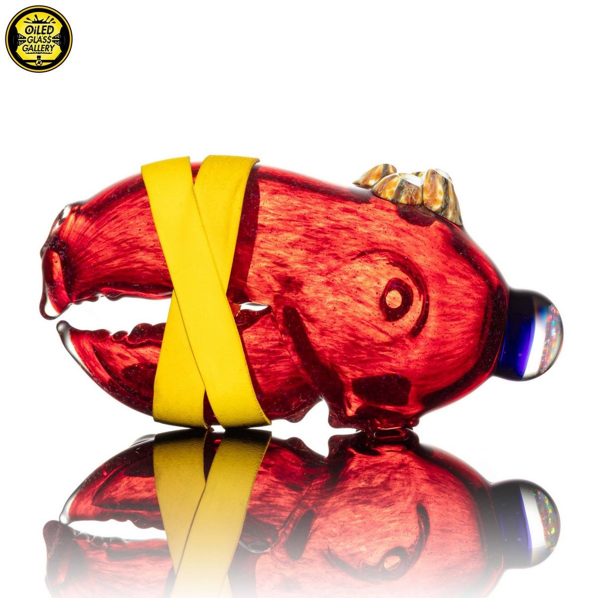 2023 4.5in Lobster Claw Spoon pipe made of custom crushed opal over Glass Alchemy Dragon’s Blood tubing featuring attached lobster claw opal coin mib and barnacles. Yellow rubber bands have been removed.