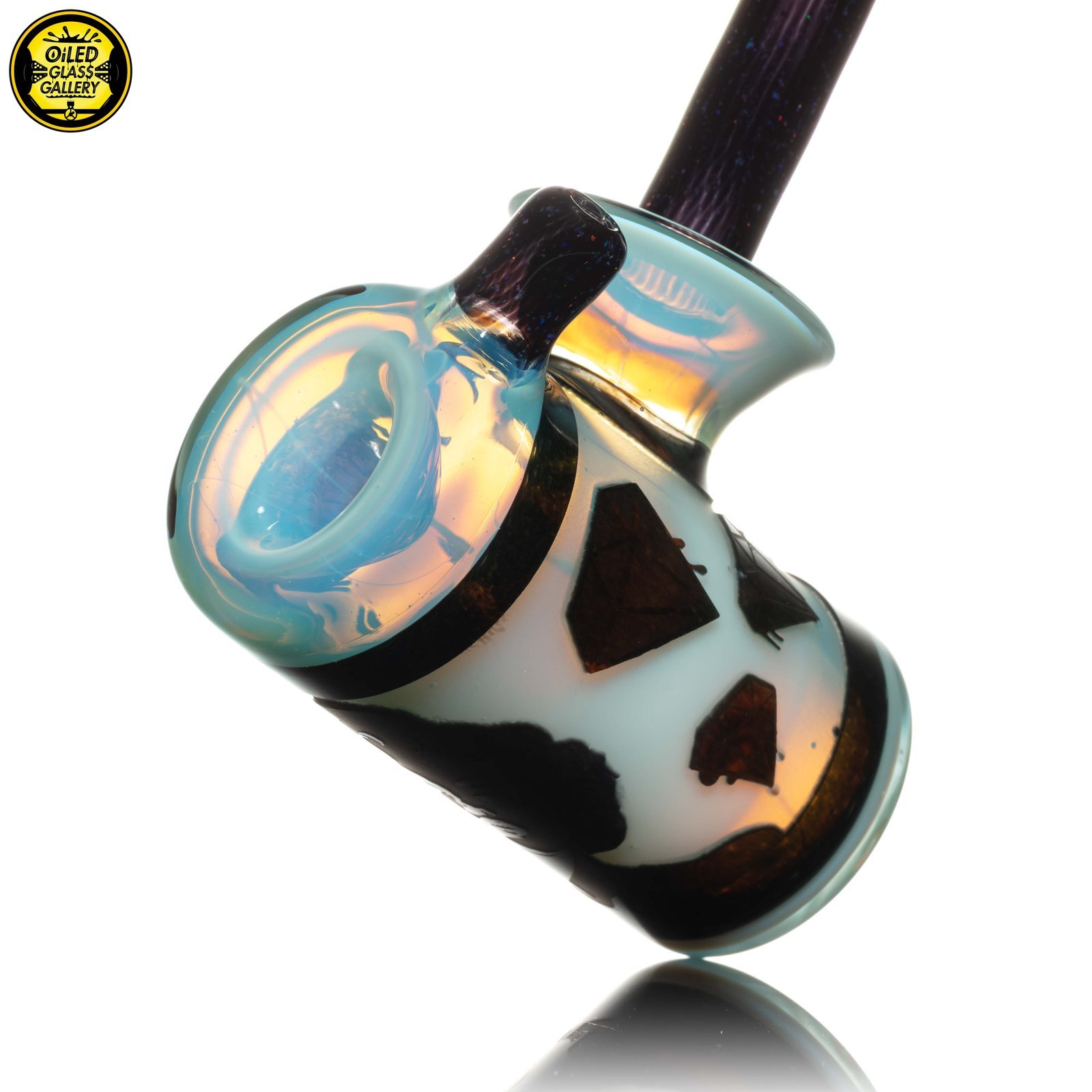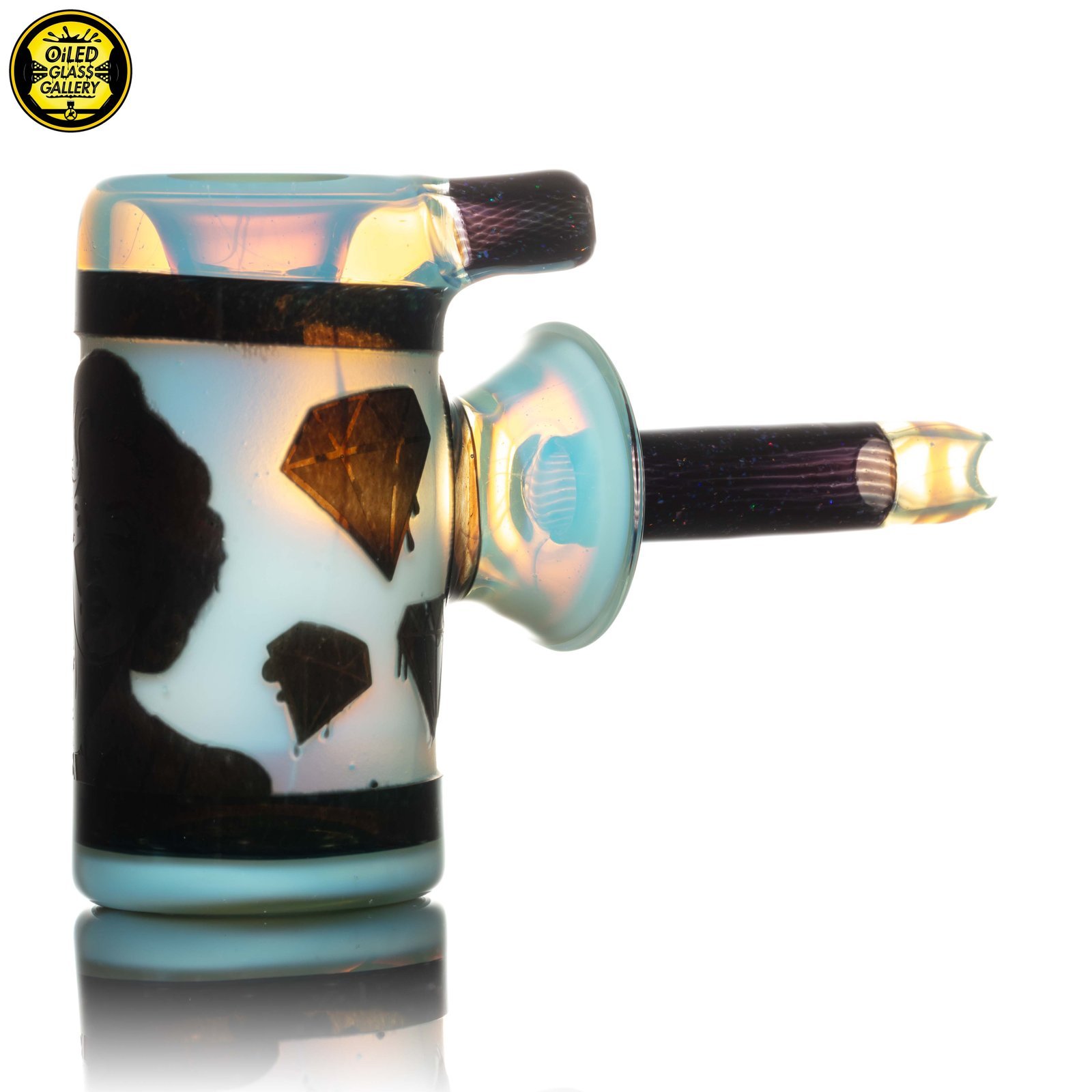 2023 4.75in “Marylin’s Diamonds” Carved Hammer pipe made of Northstar Glass Experimental Titan, Northstar Glass Galaxy, and Northstar Glass Jet Black with Crushed Opal featuring multiple layers of deep carvings.