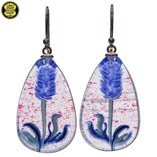 2021 1in Dichro Lavendar Millefiori earrings. After annealing, he hand cuts and polishes each pair of earrings which are then mounted on sterling silver findings. There is no mechanization involved so each pair is truly one of a kind and hand made. Earrings received may vary slightly from image shown.