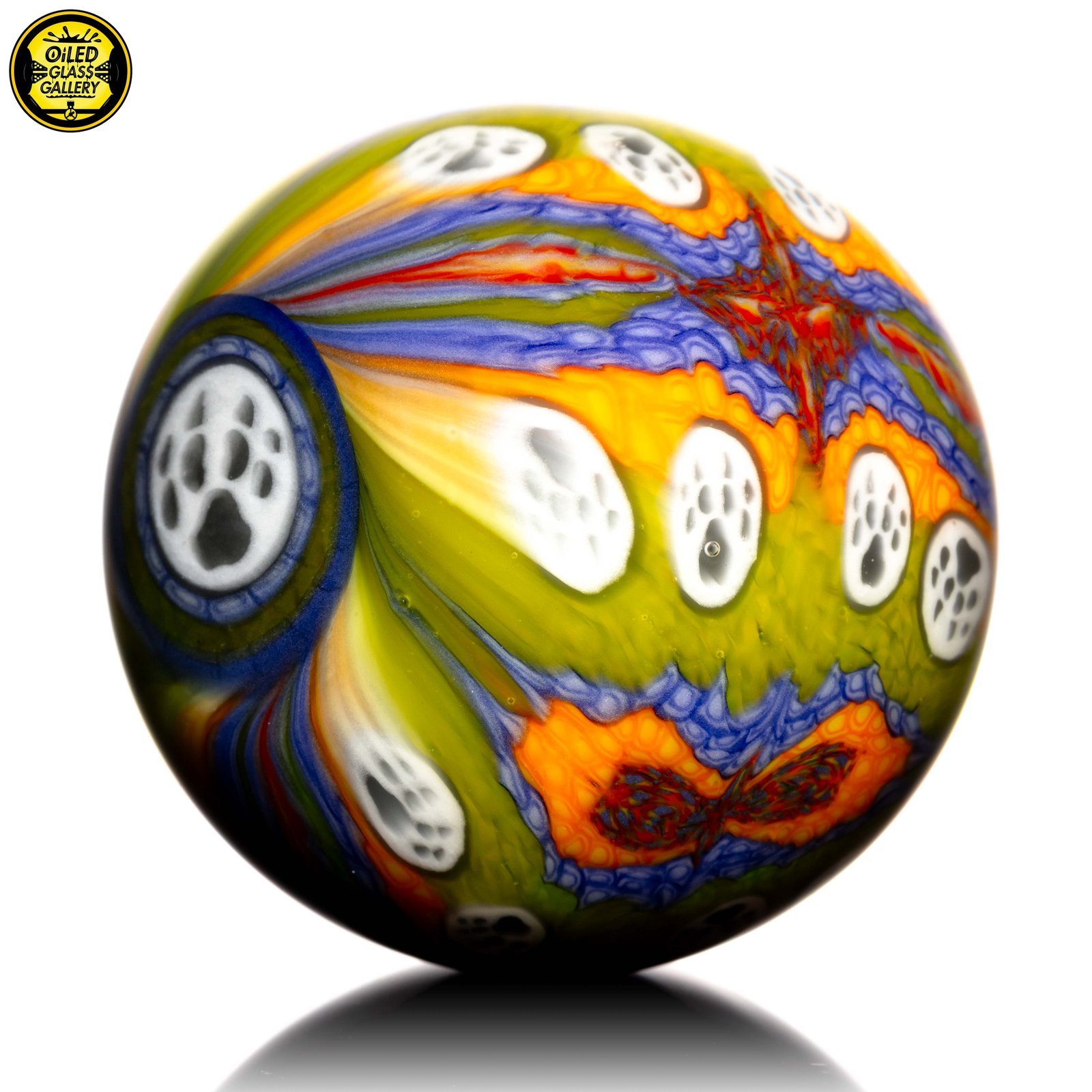 2023 45.5mm/1.8in Millefiori Paw rolled up murrine marble.