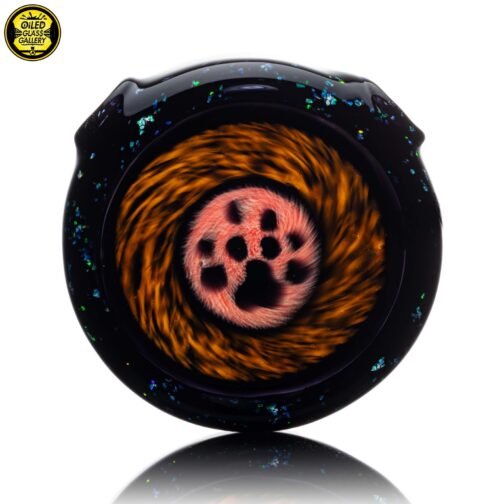 2023 2in Crushed Opal Disc Pendant with a huge mille of a wolf paw.