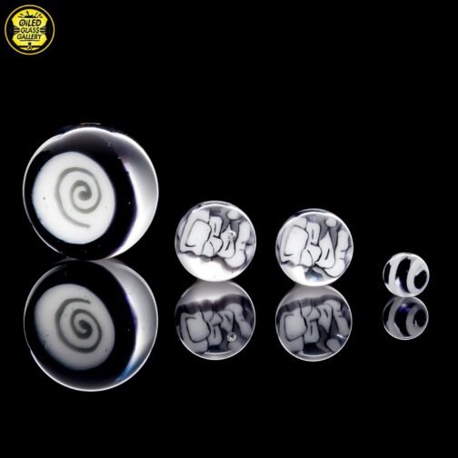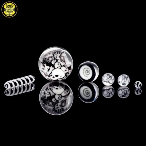 2020 Terp Slurper Marble set made of Groe’s beautiful Black & White skull millefiori and signature style “Groe” millefiori in a 25mm, 16mm, two 8mm, and 3mm marbles will a pillar.