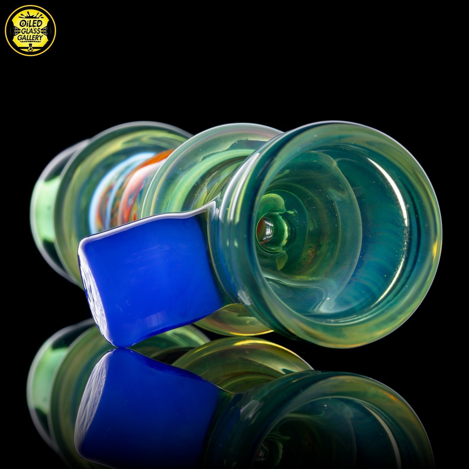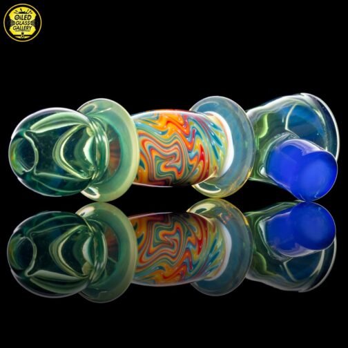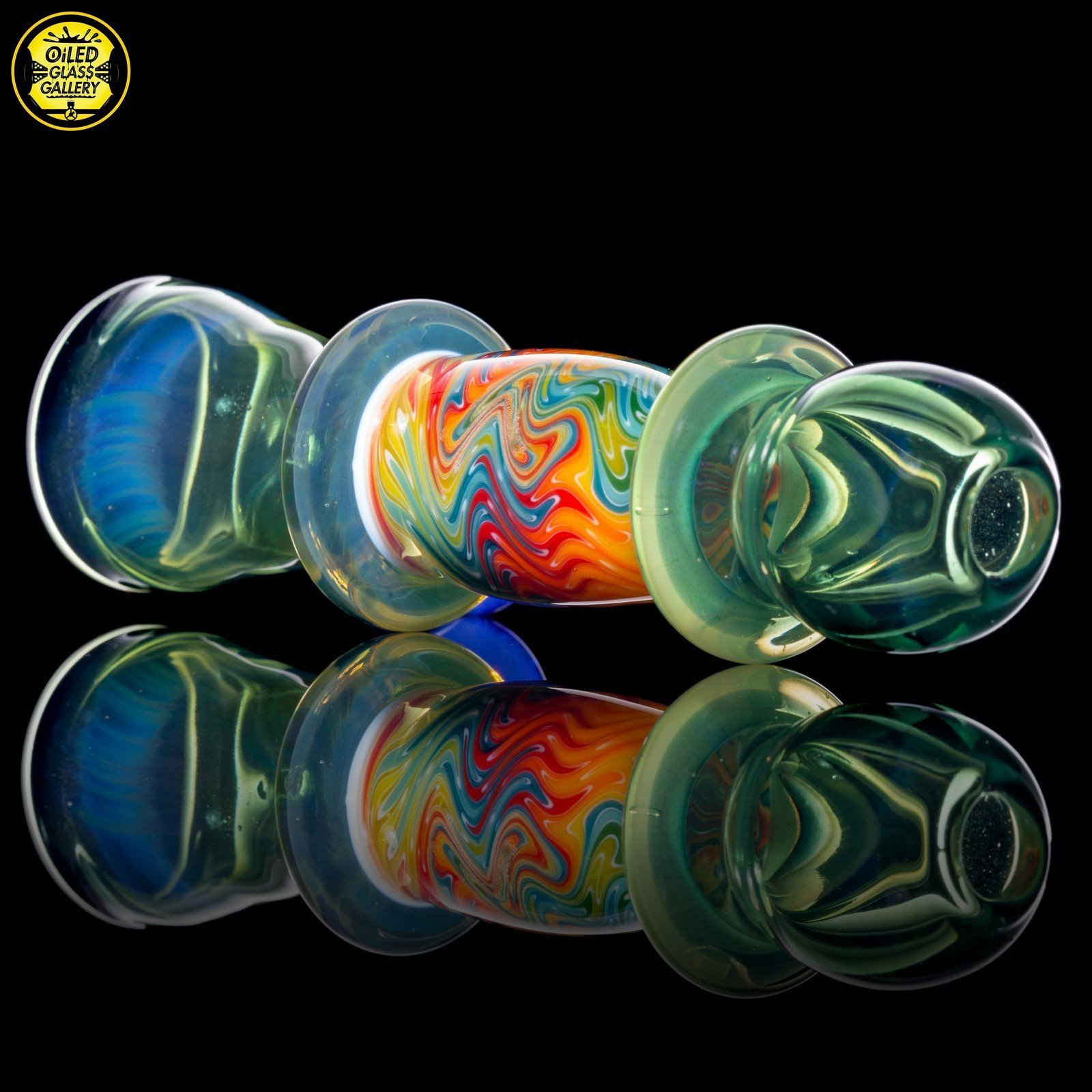 2020 3.25in Onnie/Chillum made with rainbow wig wag linework, Trautman Art Glass Sea-Slyme, Glass Alchemy Mystique and Northstar Glass Star White lipwraps.