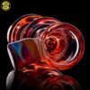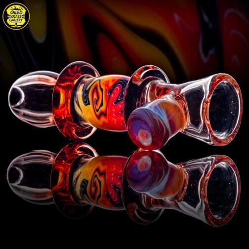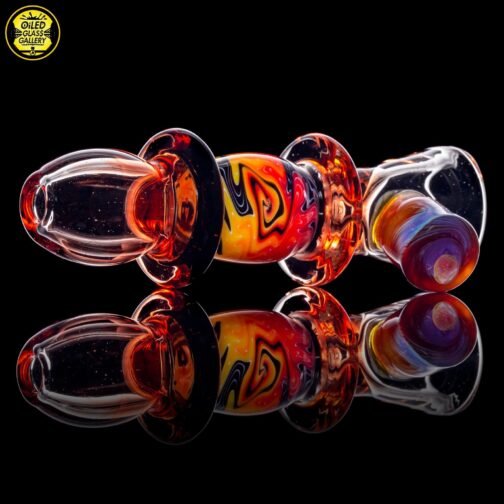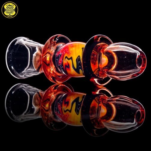 2020 3.25in Onnie/Chillum made with fire themed rewig linework, Northstar Glass Pomegranate featuring a Northstar Glass Amber Purple mib and Northstar Glass Jet Black lipwraps.