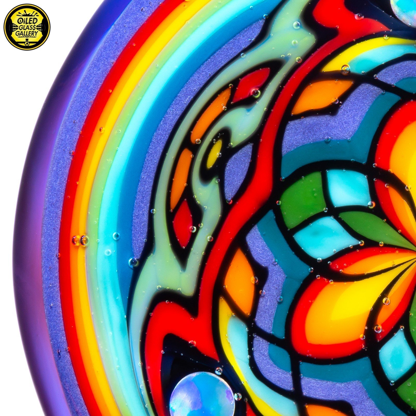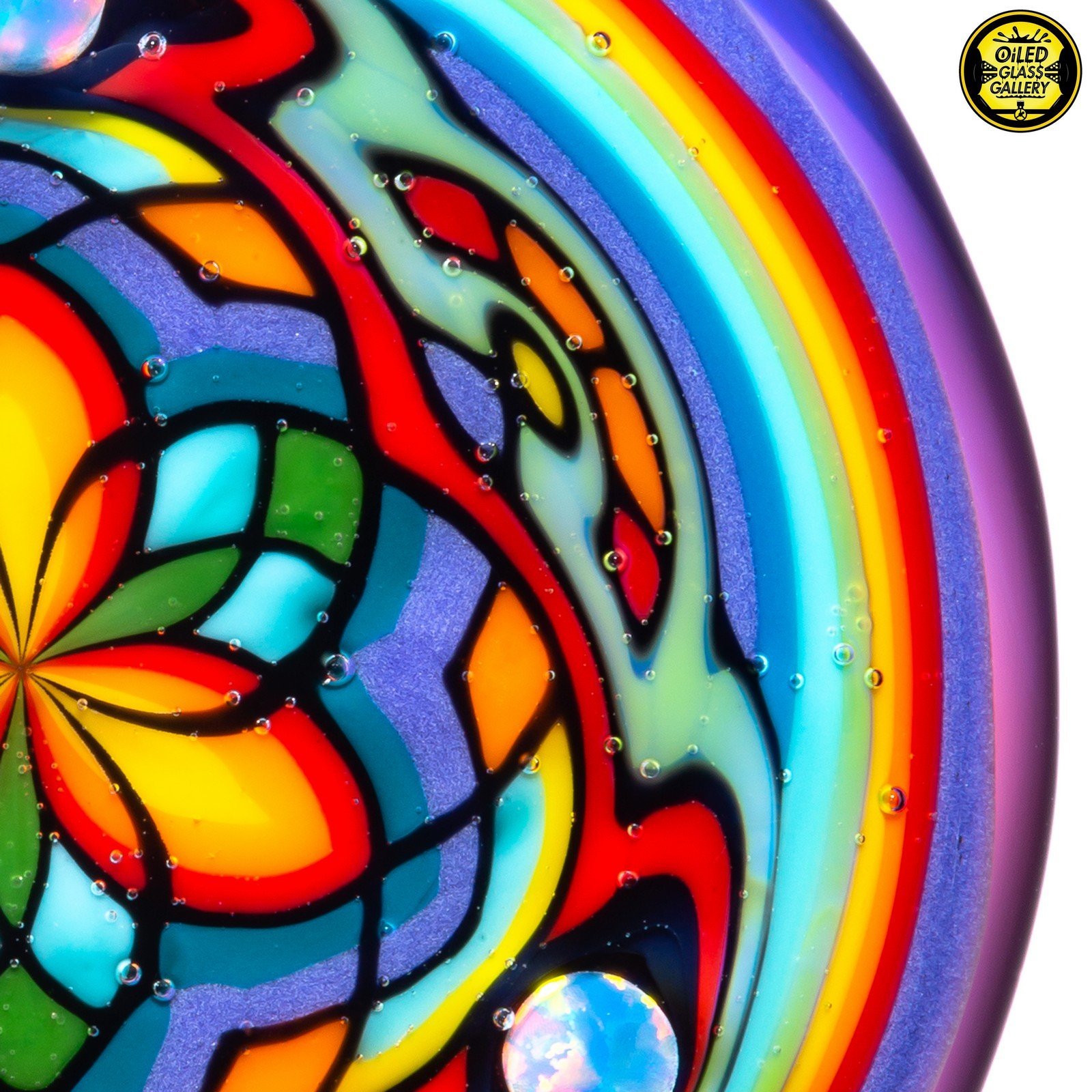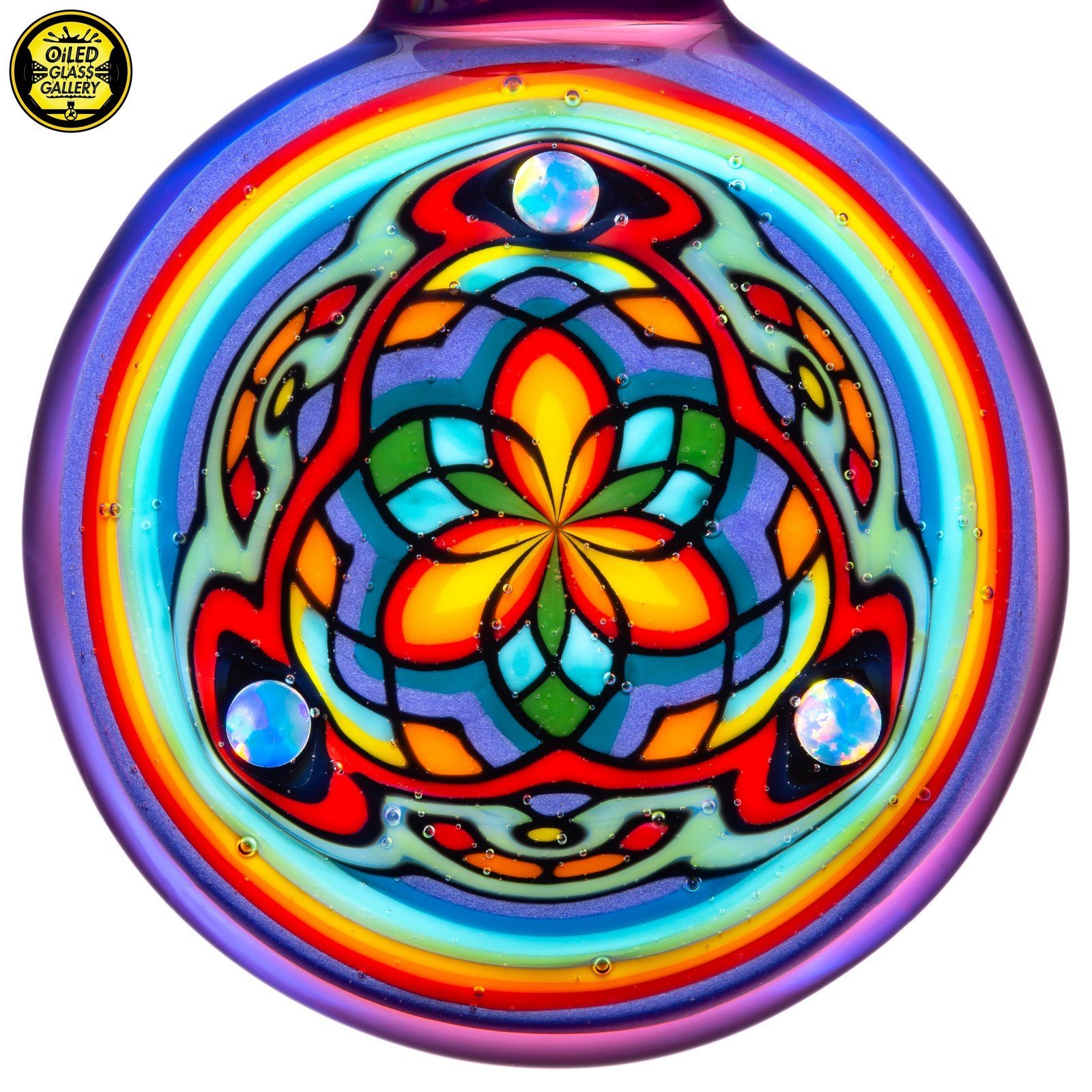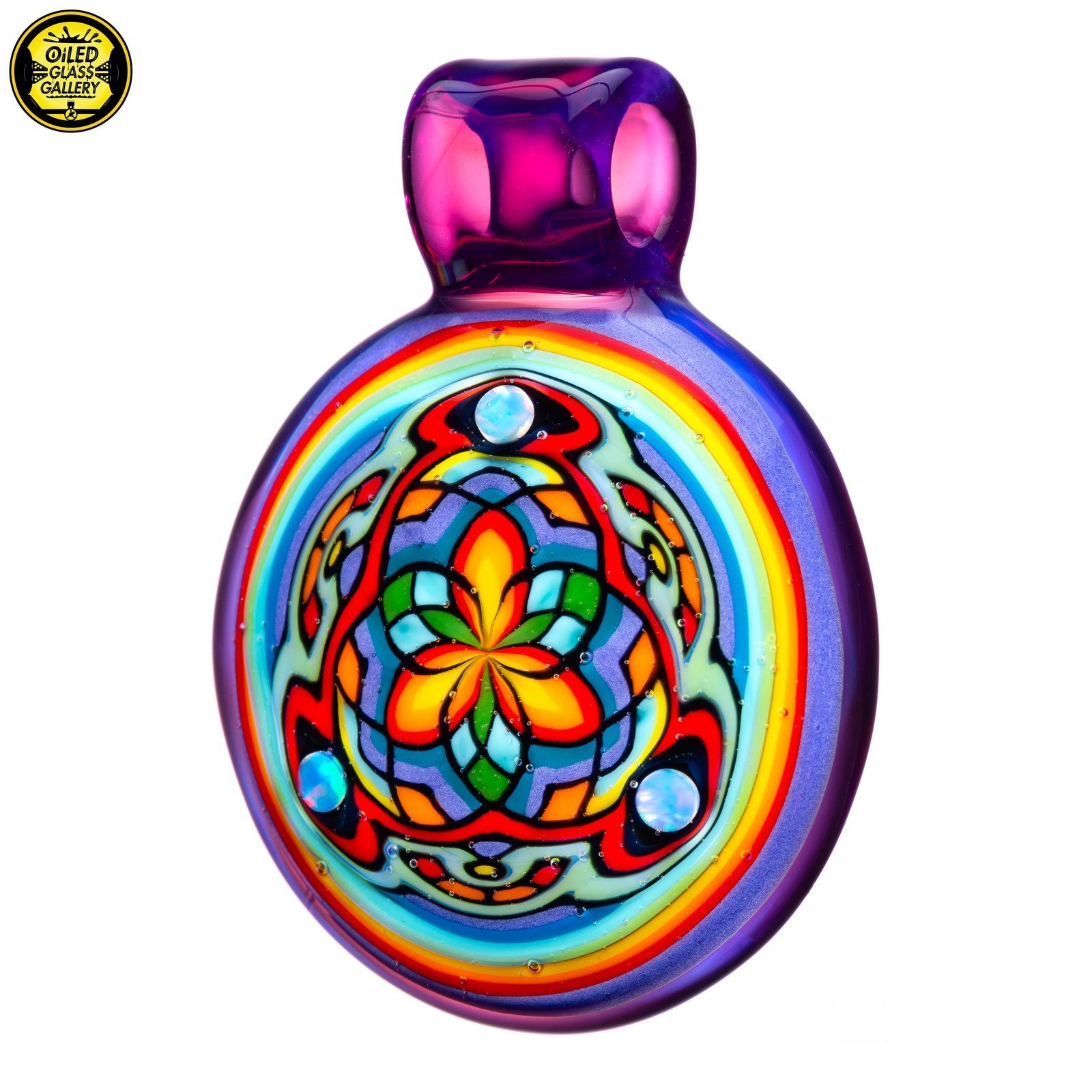 2021 1.5in x 2in Small Rainbow Fillacello Mandala Pendant #4 backed in Molten Aura Royal Jelly featuring 3 encased opal coins.