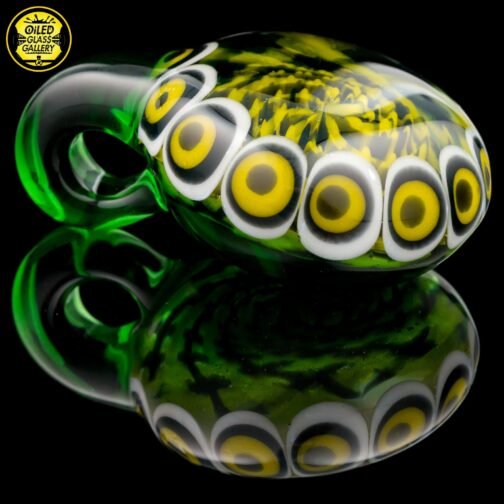 2017 2.25in x 1.75in Black & Yellow Retticello Implosion center encased in Green with White, Black, and Yellow dotstack pendant.