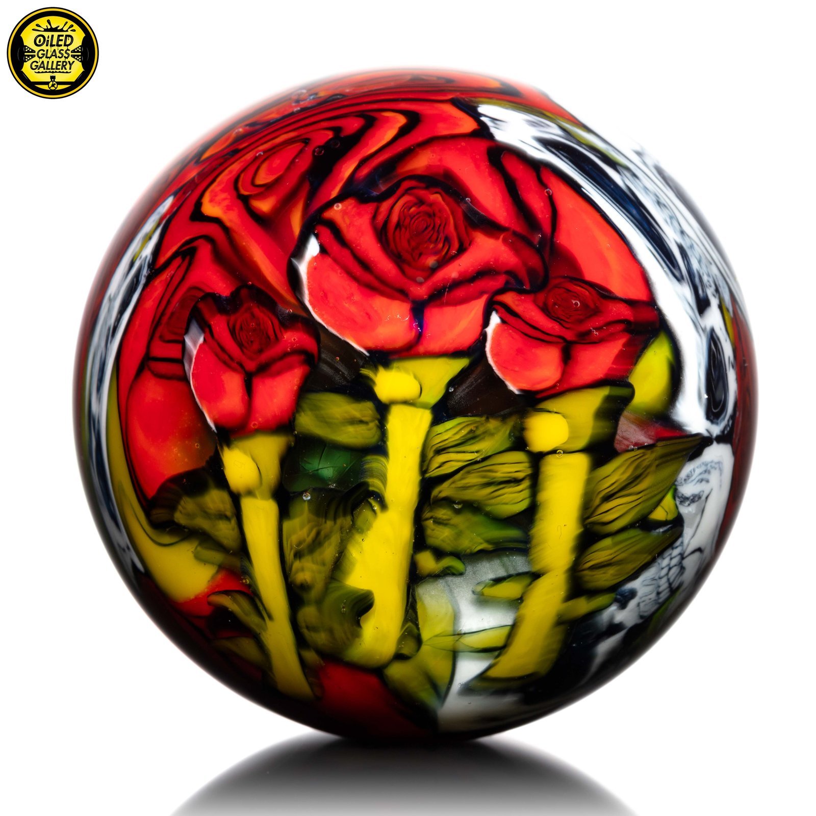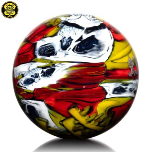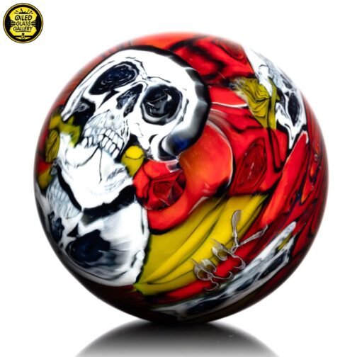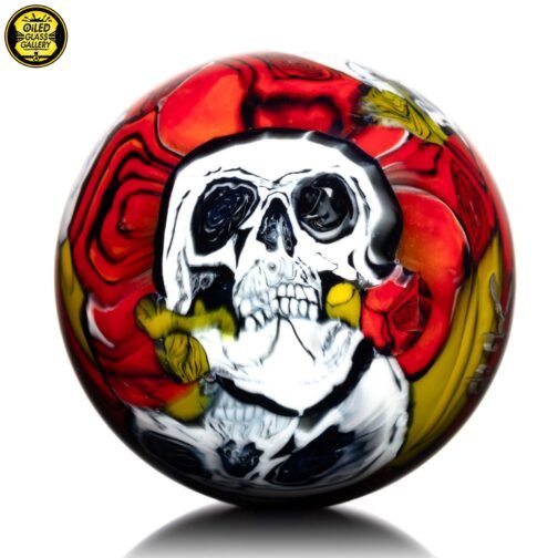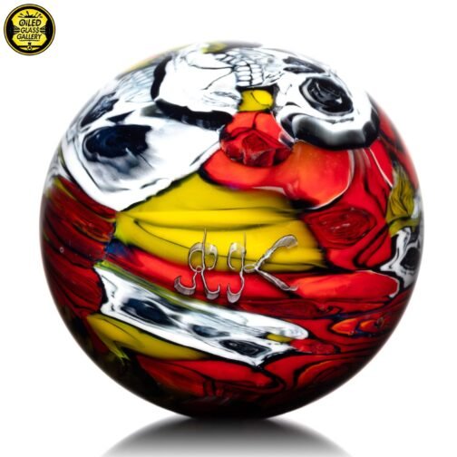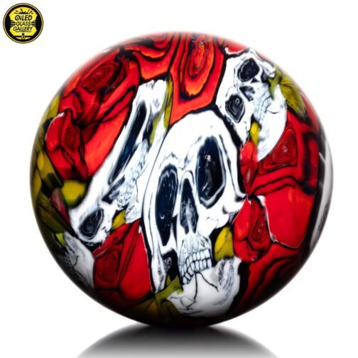 2023 60.5mm/2.38in Rose & Skull Murrine Marble featuring a bunch of layered Rose and Skull millefiori.