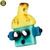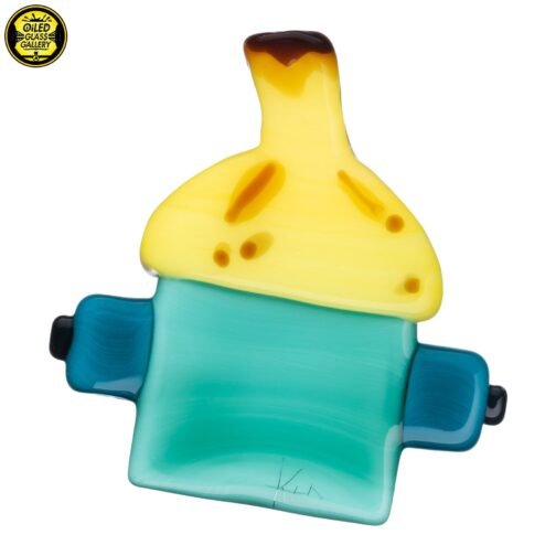 2021 2.25in x 2in Banana Blueberry Bot Pendant made of Glass Alchemy Agua Azul, Glass Alchemy Really Tealy, Momka’s Glass Lemon Yellow, Trautman Art Glass Honey Badger & Glass Alchemy Walnut featuring 2 tumbled opal eyes.