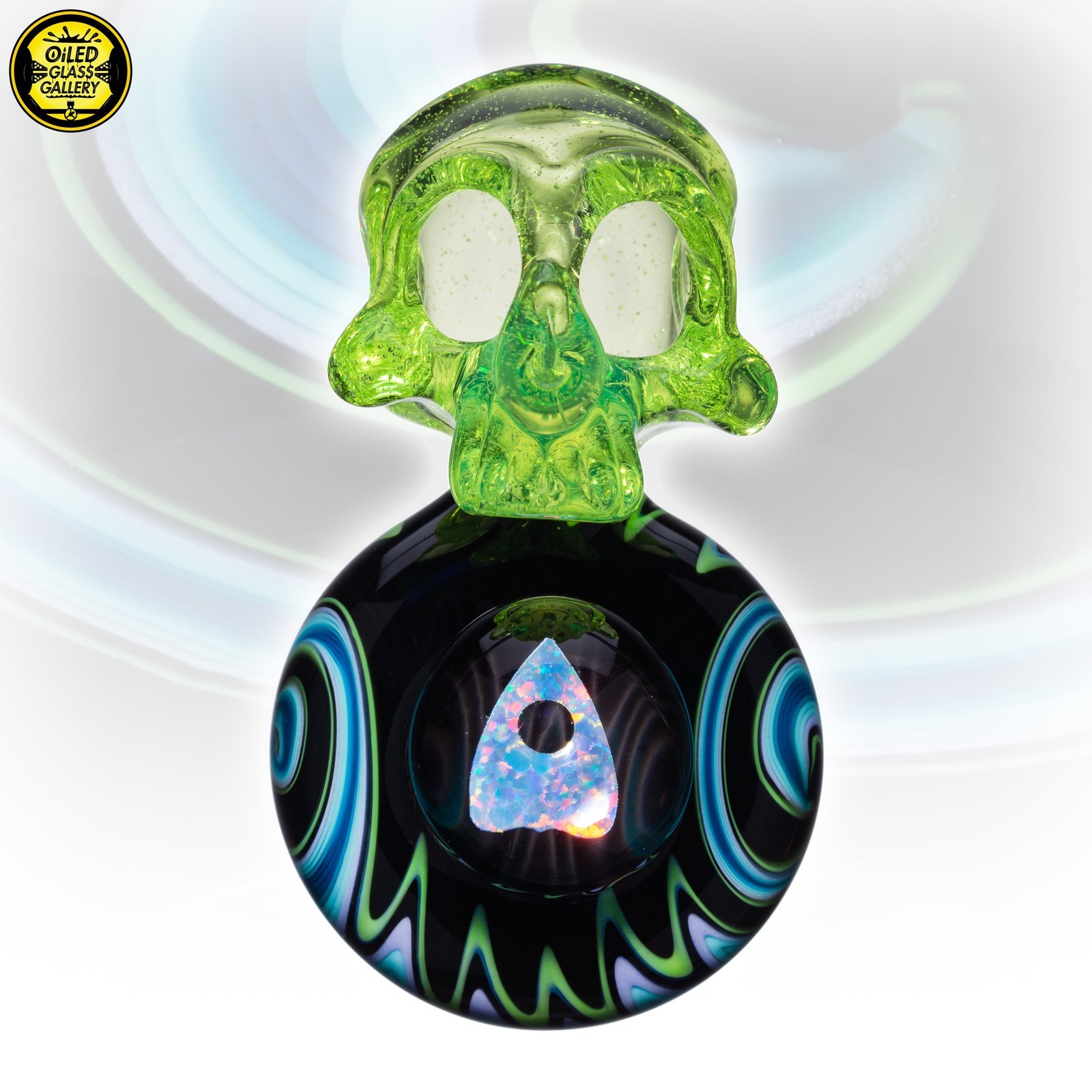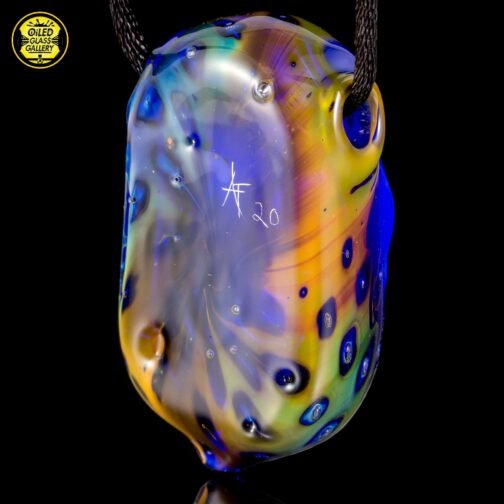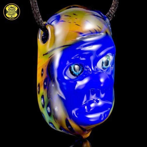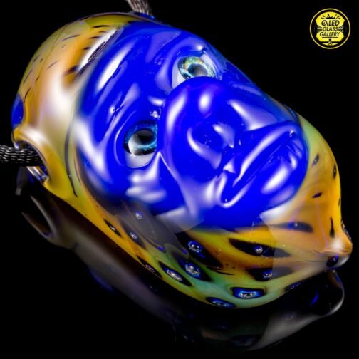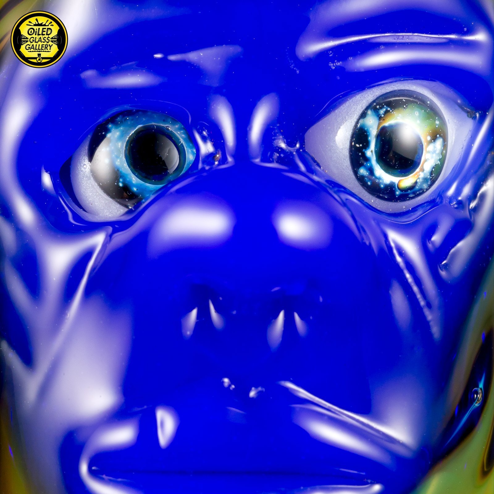 2020 1.75in x 1in x 1in Head pendant made of 24k Gold and .999 Silver fume bubble trap with Molten Aura Deja Blue face and galaxy fumed eyes.