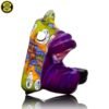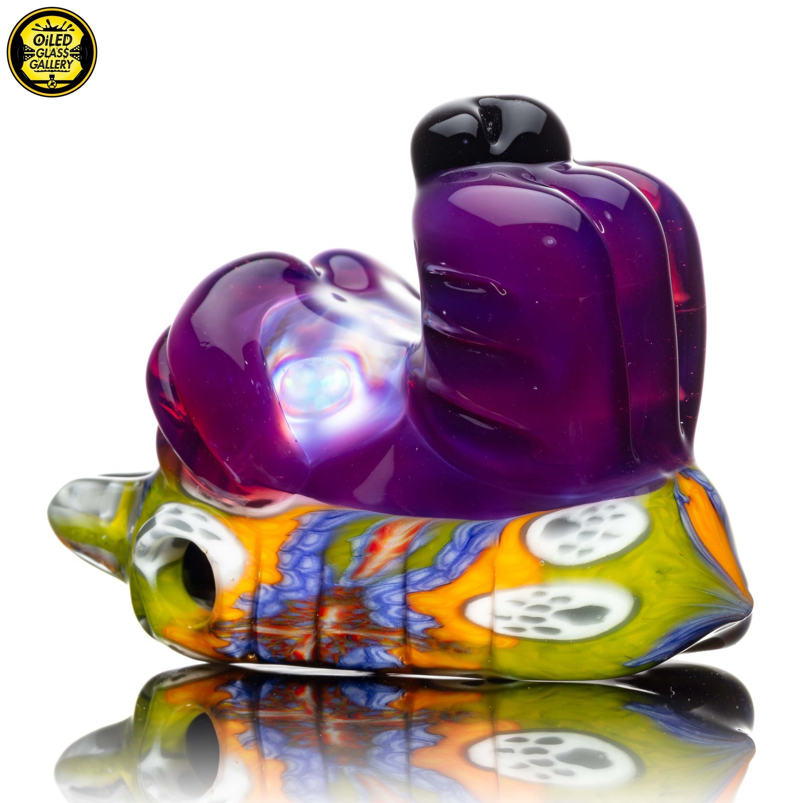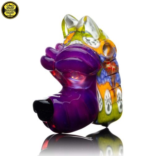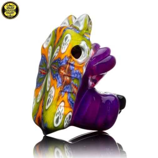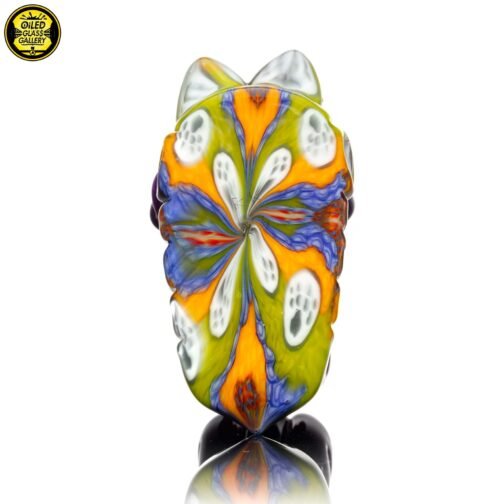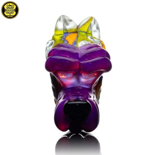 2023 2.5in x 1.25in x 2in Millefiori Closed Mouth Wolf Pendant made of Northstar Glass Stargazer and Jet Black featuring 2 White Opal eyes and is ti signed on the back.
