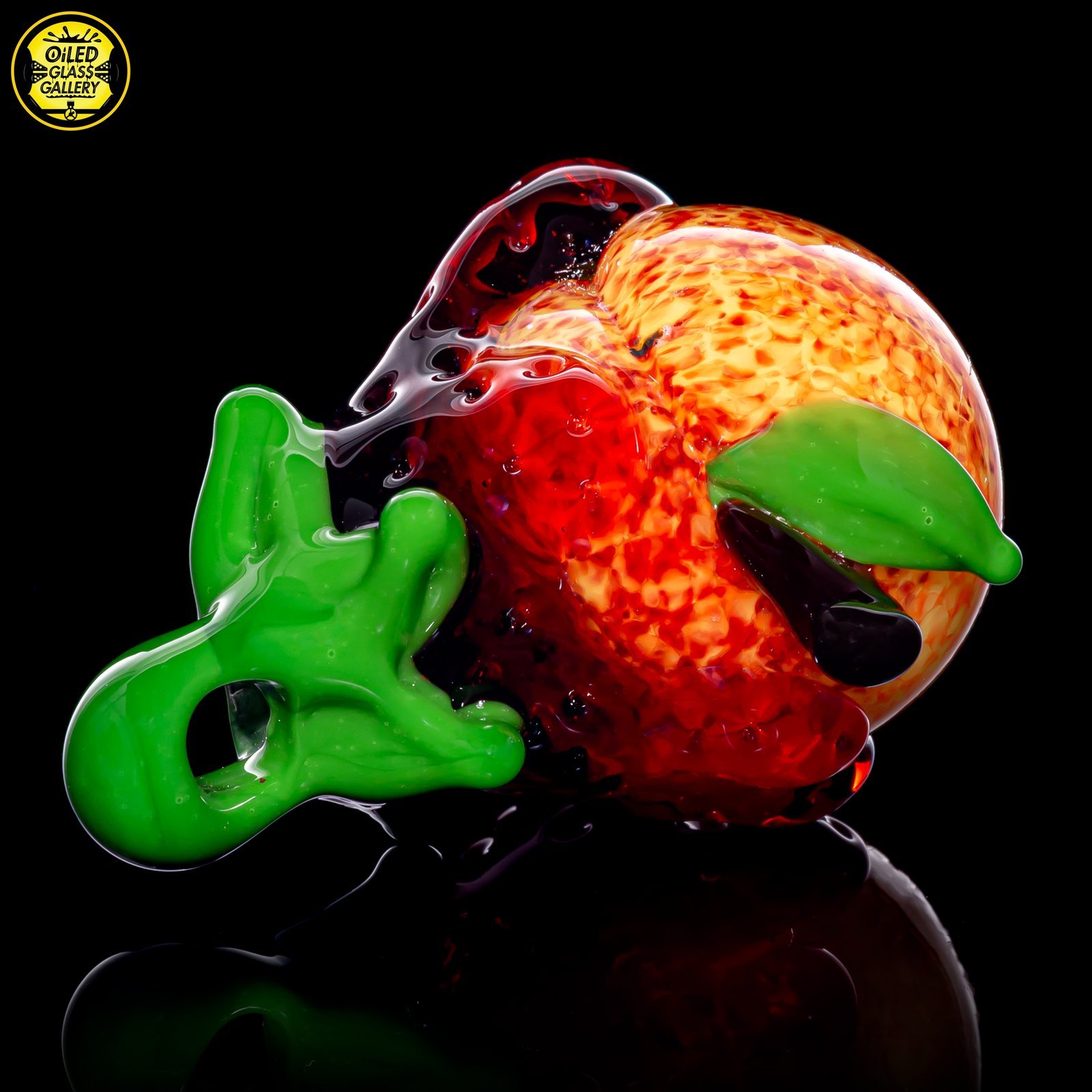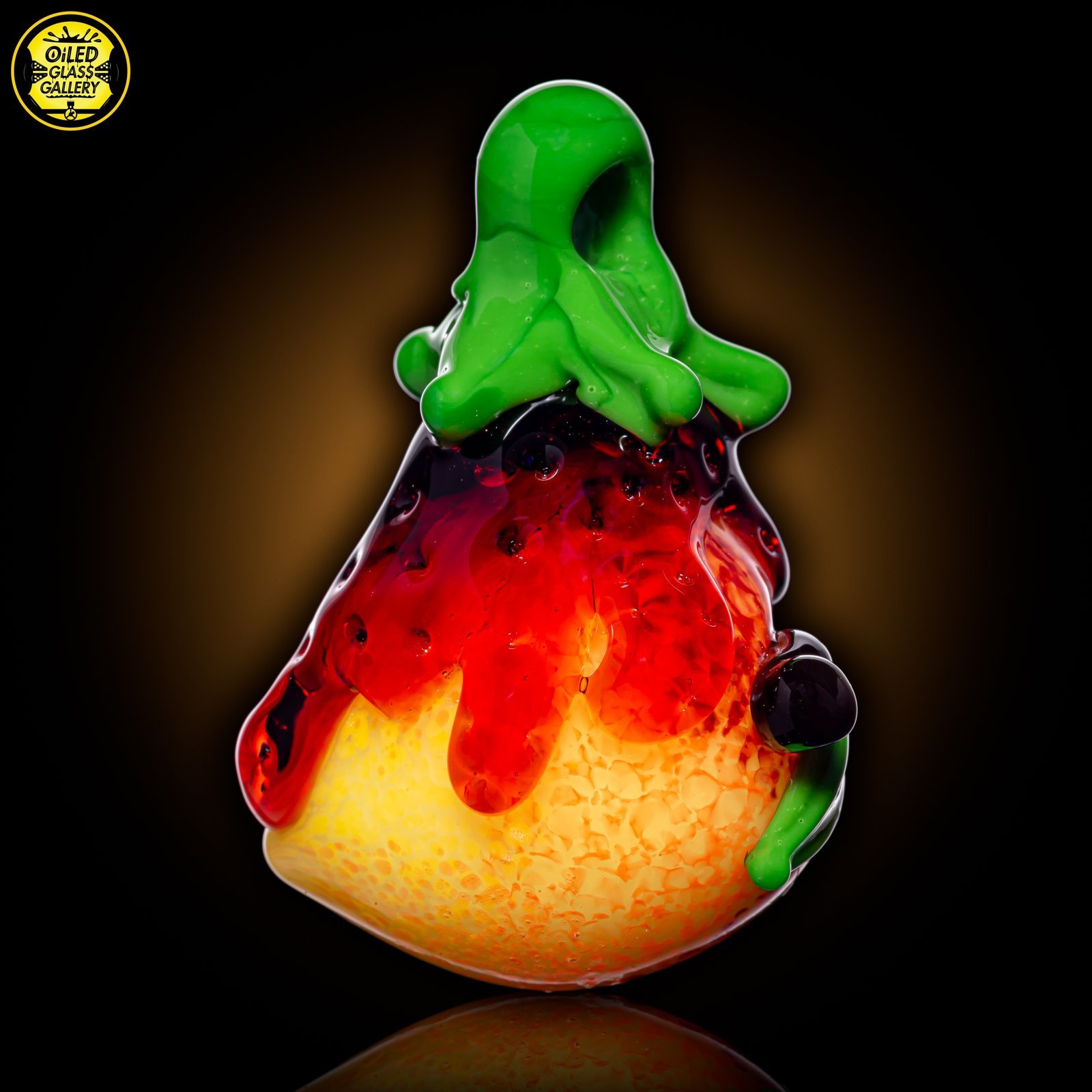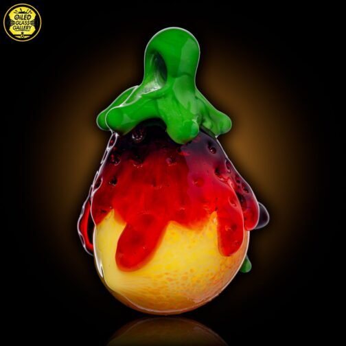 2020 1.75in x 1.25in Strawberry Peach pendant made of Northstar Glass Pomegranate, Northstar Glass Canary, Tratuman Art Glass Lava, Momka’s Glass Red Elvis, Momka’s Glass Charles Brown and Glass Alchemy Shamrock.