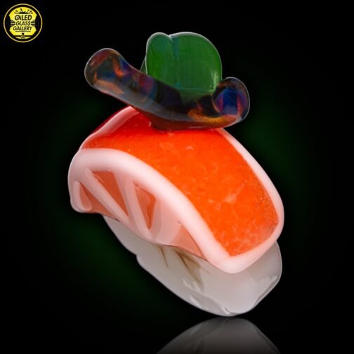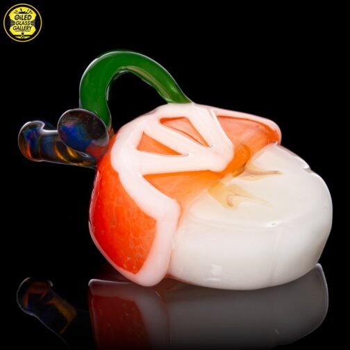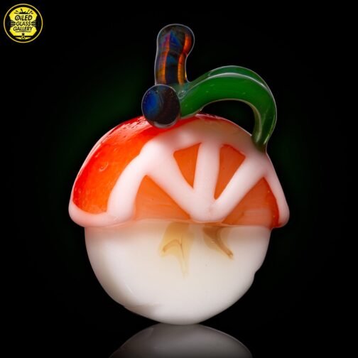 2020 1.75in x 1.25in Orange Banana pendant made of Northstar Glass Lava, Momka’s Glass Green Ivy, Momka’s Glass Charles Brown and Origin Glass Ivory Tusk.