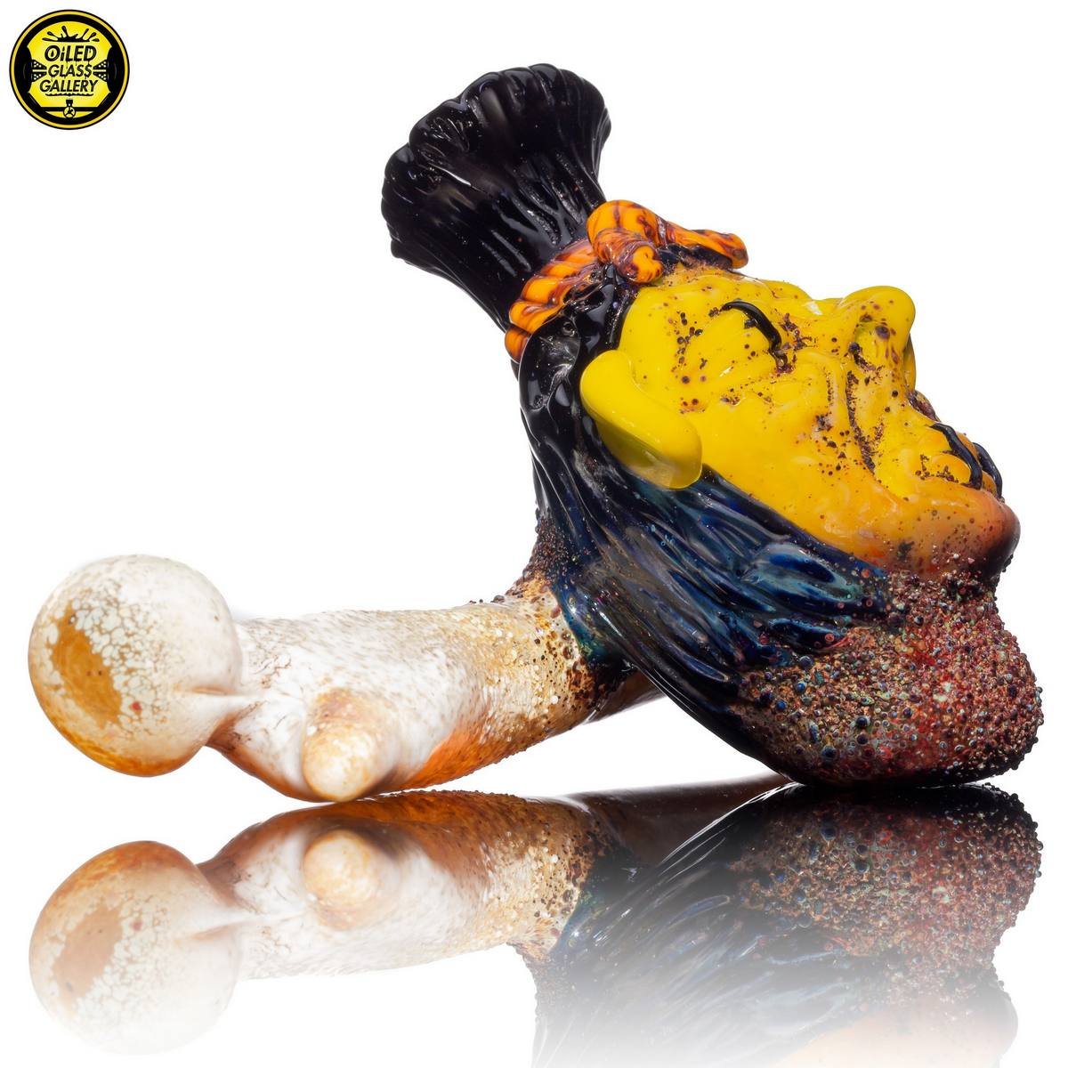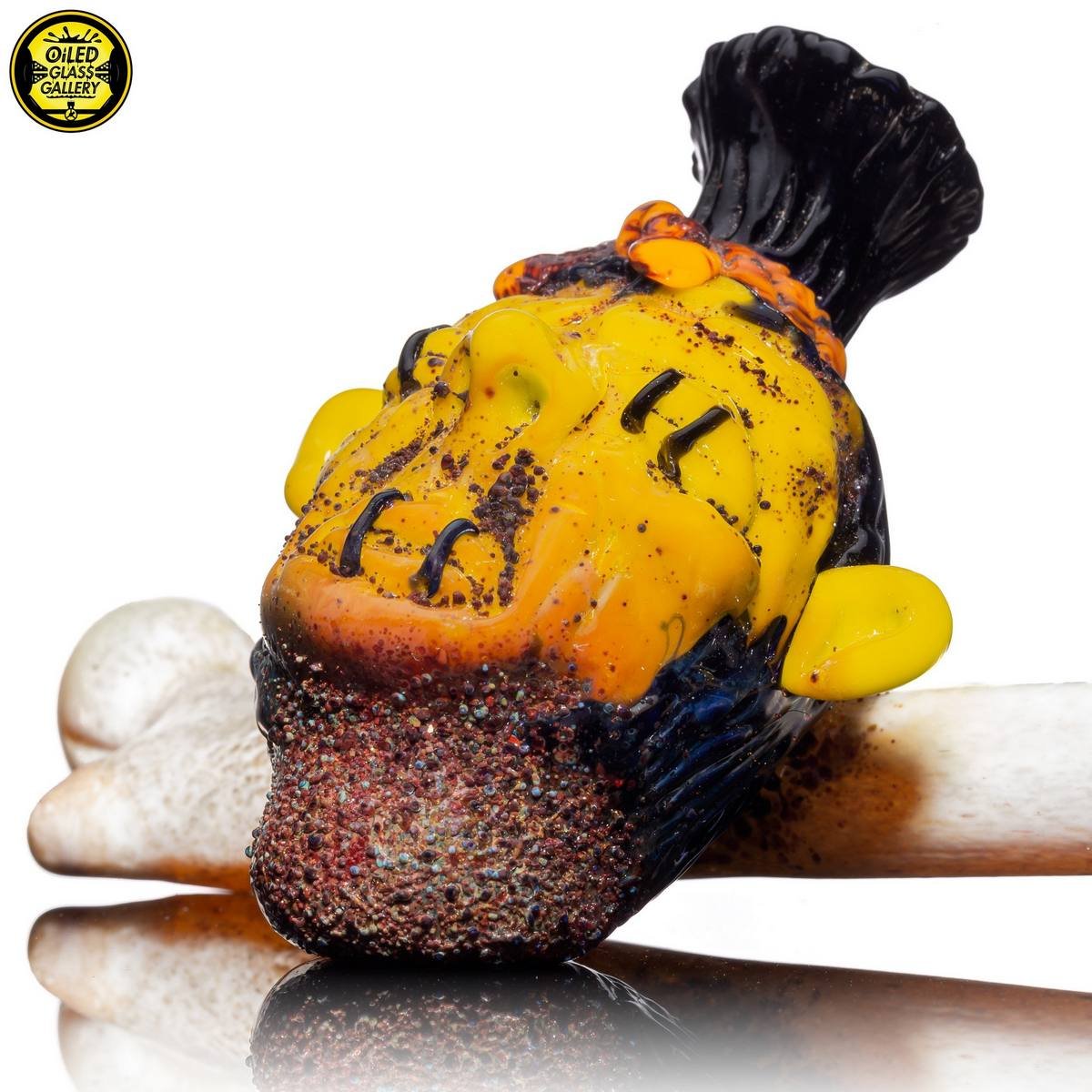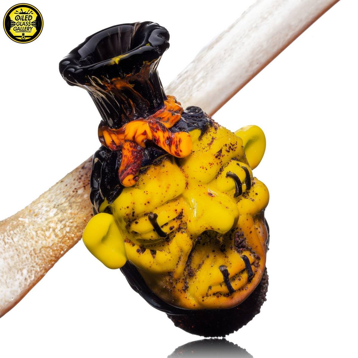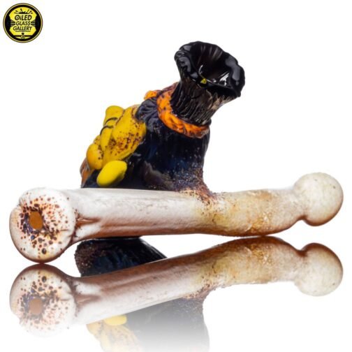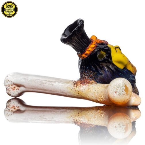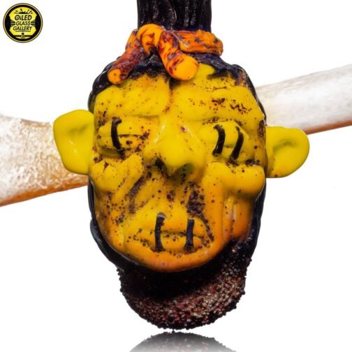 2021 6.25in Shrunken Head Bone sidecar pipe made of Glass Alchemy Chartreuse, Northstar Glass Jet Black, Northstar Glass Star White and Northstar Glass Red Exotic frit.