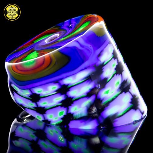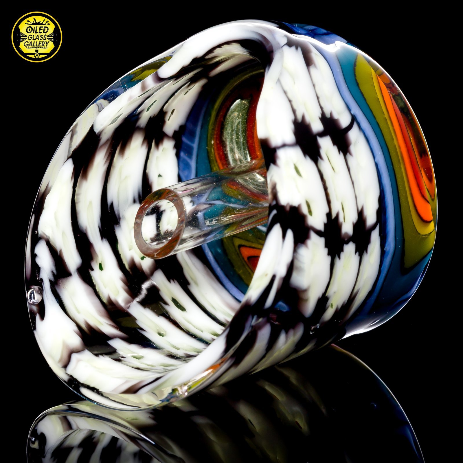 2016 UV Skull and Rainbow Millefiori QFZ Slant Cap. From a private collection and fits a 25mm slant top banger or perfectly fits a Quave Club XXL Slant Top bangers as well as others.