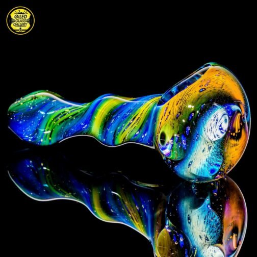 2020 4in Spoon pipe made of Spacetech Gold & Silver fume with 3 mibs on the side.