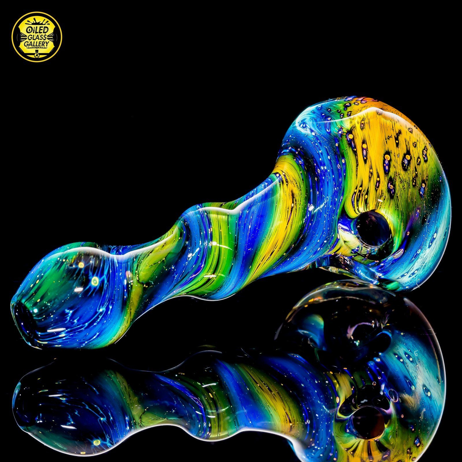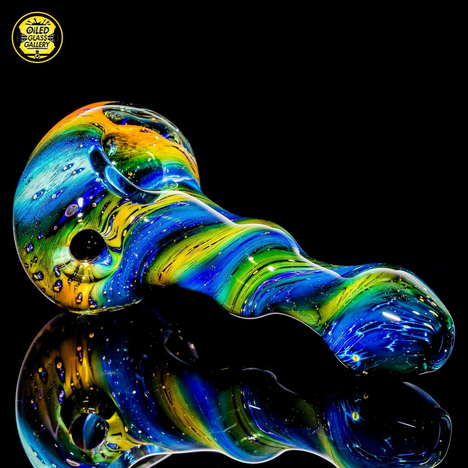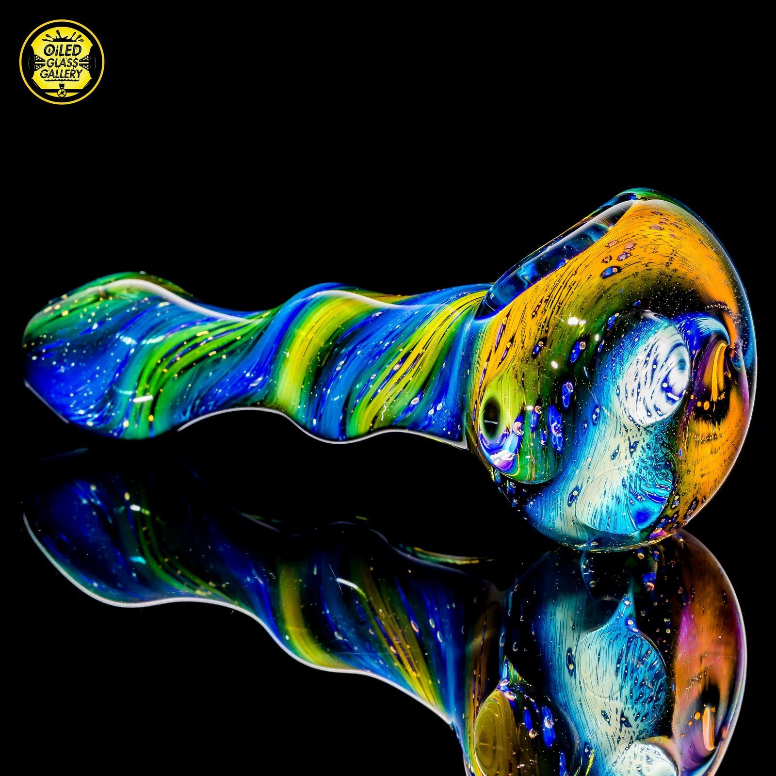2020 4in Spoon pipe made of Spacetech Gold & Silver fume with 3 mibs on the side.