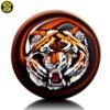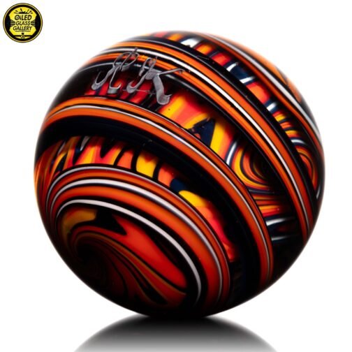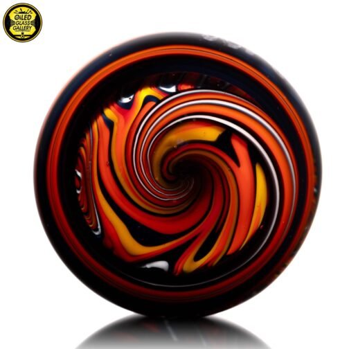 2023 60.5mm/2.4in Tiger Swirl Millefiori Marble featuring a massive Tiger millefiori over a double layer spiral sections.