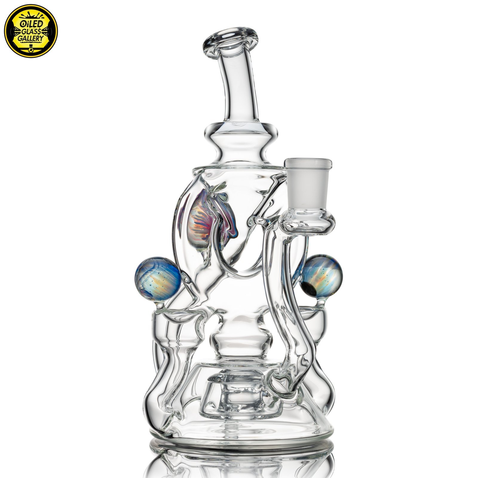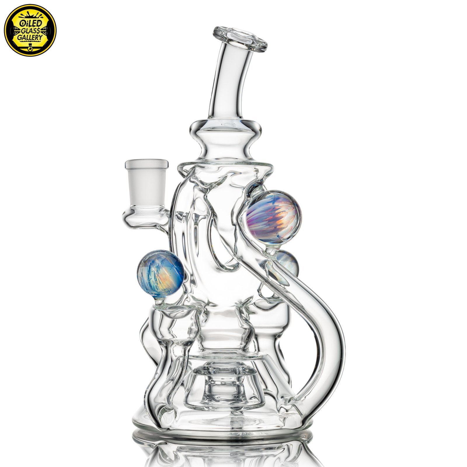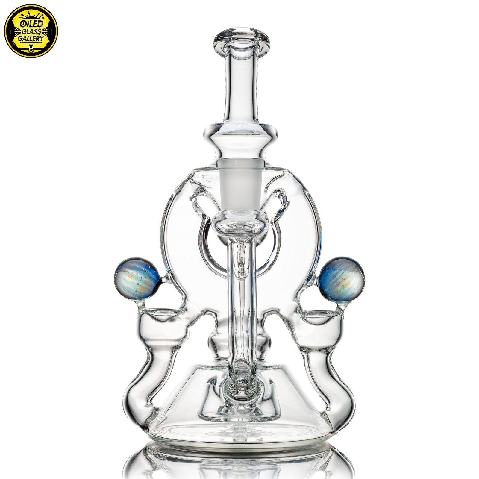 2021 14mm 7.75in Wishbone Double Up Single Return Tornado Recycler featuring three implosion mibs and comes shipped in a Yellow Pelican iM2075 case.
