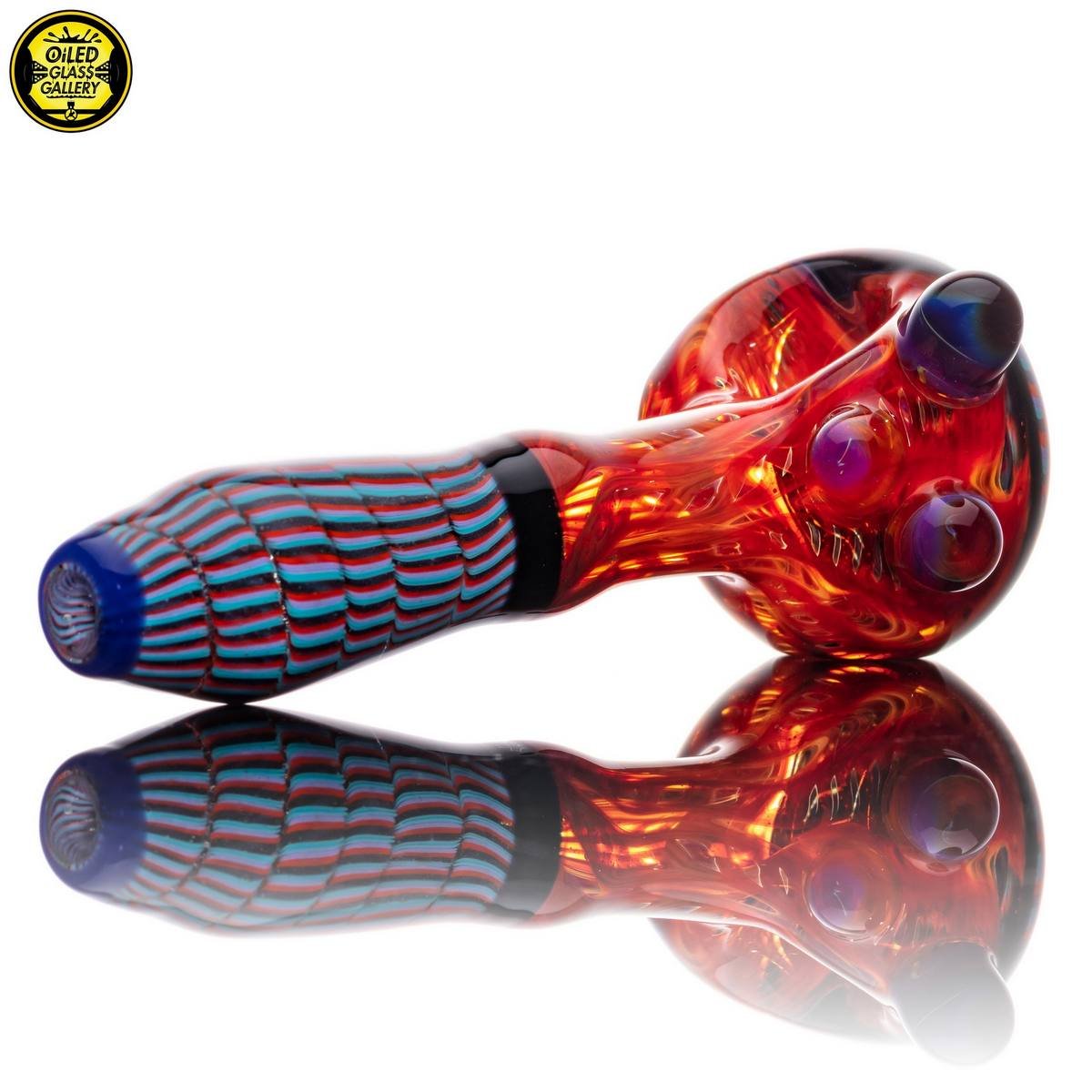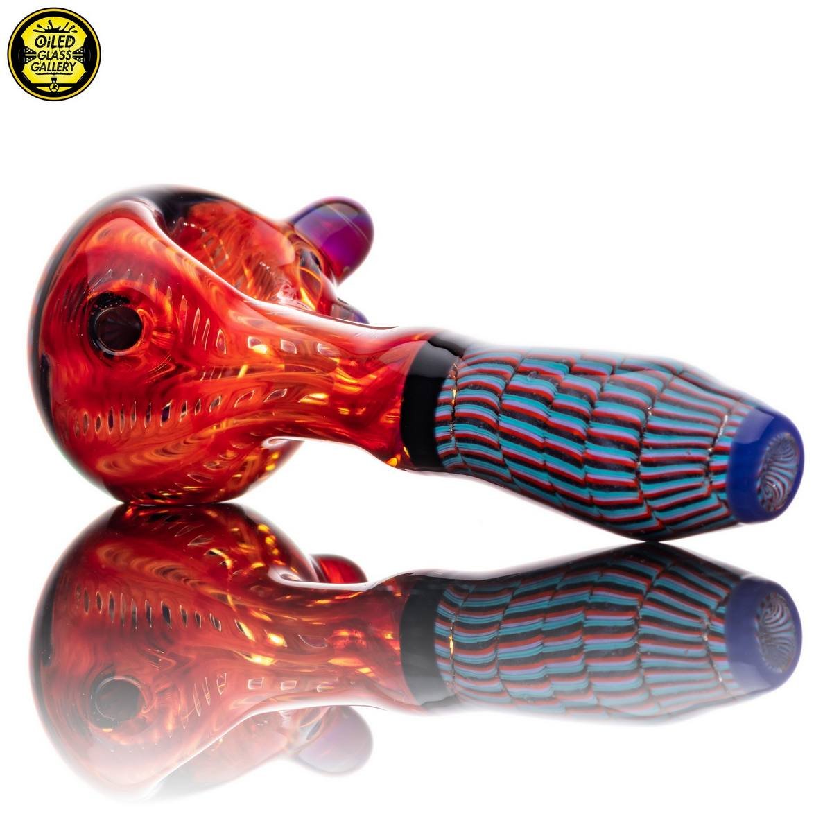 2021 4.75in Dual Latticino Section Spoon pipe made of Glass Alchemy Persimmon Strike wrap and rake.